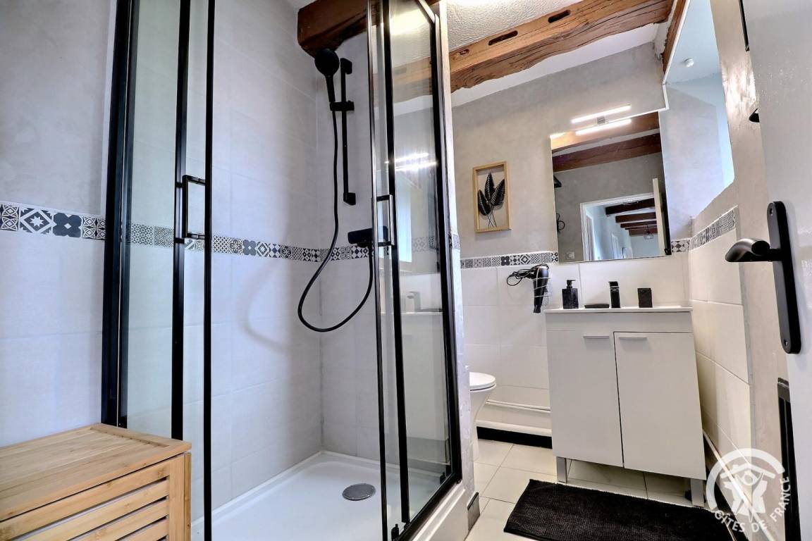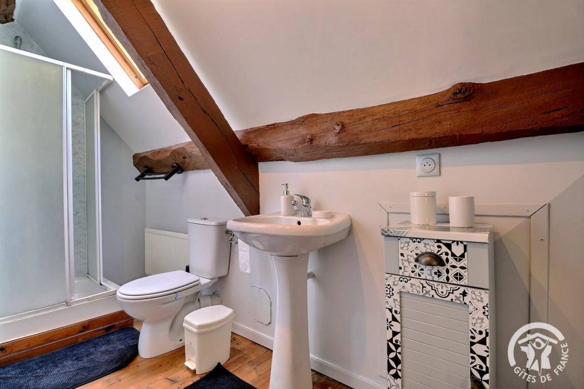 „Maison dont les travaux ont été effectués par un bricoleur du dimancheportes douches très étroites. Congélateur sal, pas d eau chaude à l étage. Escalier pas terrible.“