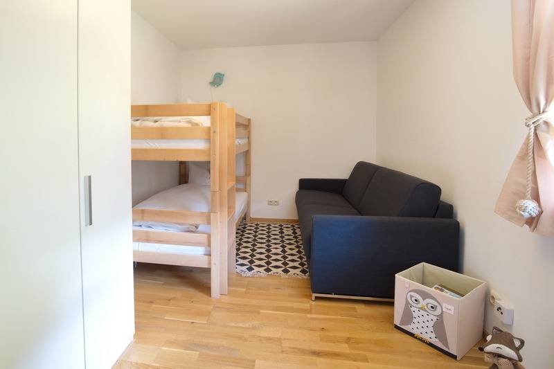 Das moderne Badezimmer beinhaltet Dusche, Waschbecken und Handtuchheizkörper das WC ist extra. Das 1. Schlafzimmer bietet Ihnen ein bequemes Doppelbett und einen geräumigen Kleiderschrank, das 2. Schlafzimmer ist mit einem Stockbett, Schrank sowie einem Sofa ausgestattet.