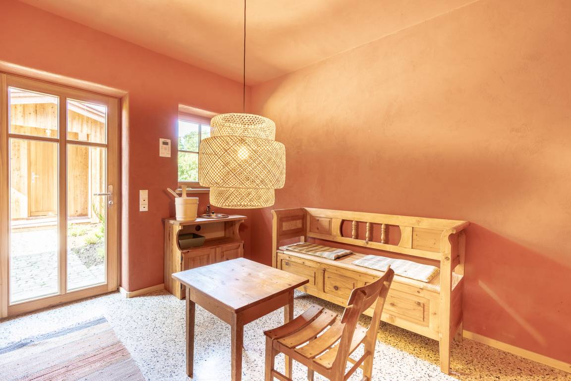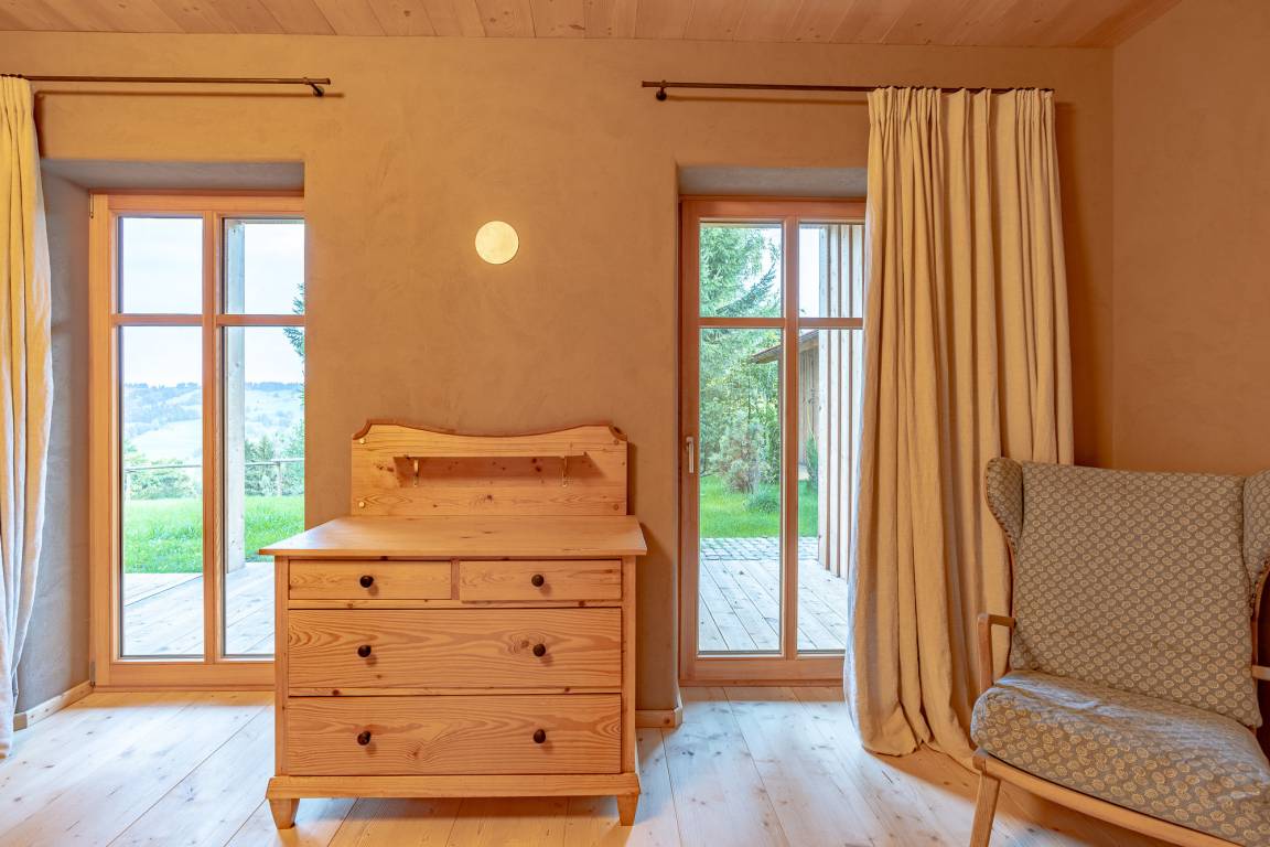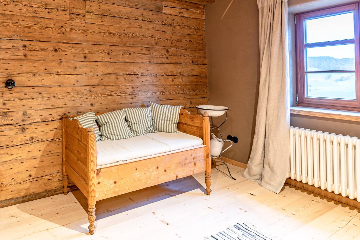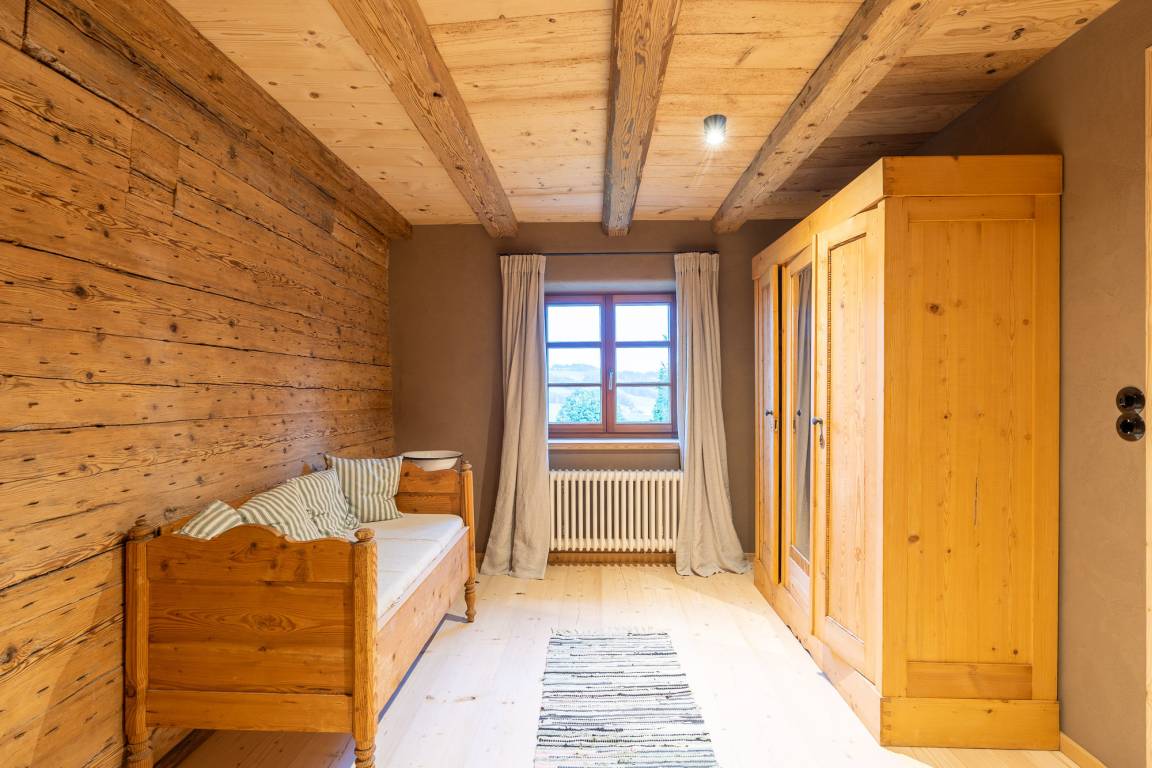 Mehr als drei Jahre dauerte die Planung und liebevolle Sanierung des 1870 erbauten alten Bauernhauses „Buchenberg". Vorhandenes Altholz wurde genutzt und mit hoher Wertigkeit wieder eingebaut. Natürliche Materialien verleihen den Räumen eine spürbare Behaglichkeit und ein grossartiges Raumklima. Ein freistehendes Urlaubsdomizil in ruhiger Alleinlage perfekt für Erholungsuchende.