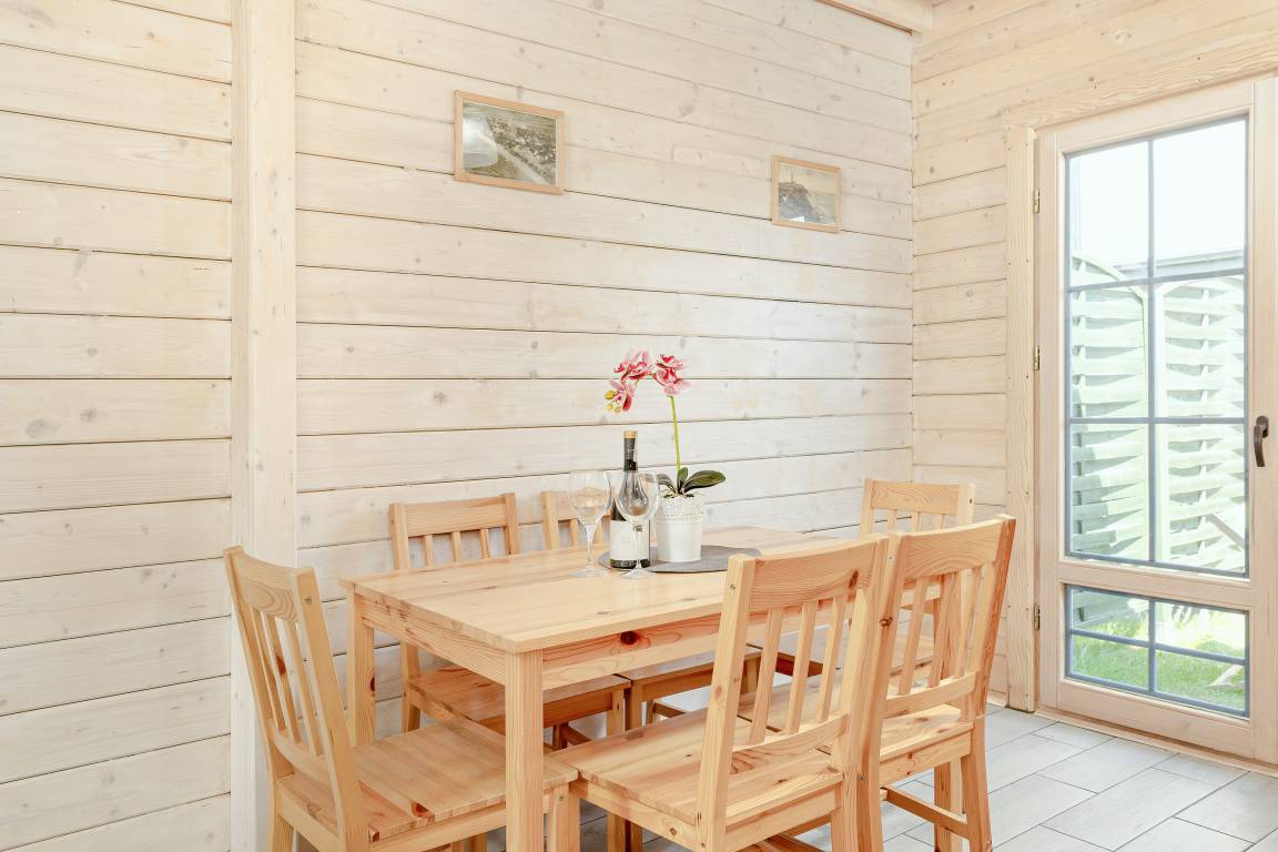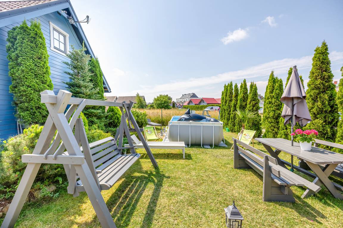Haus: Sehr gepflegte Ferienhausanlage mit schönen Ferienhäuser. Freundliche, wohnliche Einrichtung. Kostenloses Internet über WLan. Heizung mit E-Radiatoren (Bestellung, Gebühr), Warmwasser über E-Boiler. Terrasse mit Sitzmöbeln, Grill, anschließend Rasenfläche. Kleiner Rundpool (geöffnet 20.6-31.8), Kinderspielplatz mit Schaukel, Rutsche, Sandkasten, Trampolin zur gemeinschaftlichen Nutzung. Fahrradverleih (im Preis inklusiv, nach Verfügbarkeit). Parkplatz auf umzäuntem Grundstück. Aus Sicherheitsgründen ist die Ferienhausanlage videoüberwacht.