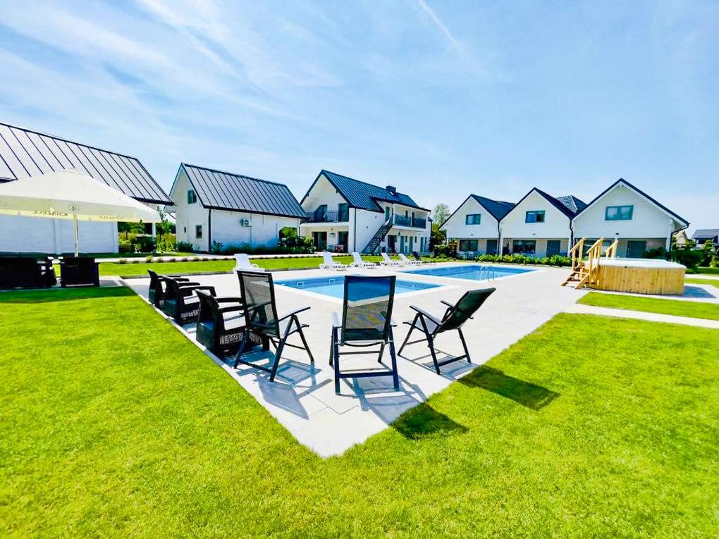 Haus: Großzügige Ferienhäuser (70 qm) mit Sauna und Pool in einer schönen Ferienhausanlage, 2024 neu erbaut. Gemütliche, geschmackvolle Einrichtung. Alle Häuser mit Klimaanlage (Kühl- und Heizfunktion), teils Fußbodenheizung (Parterre). Kostenloses Internet über W-Lan. Große Terrasse mit Sitzmöbeln. 1 Pkw-Stellplatz/Haus vor dem Grundstück.