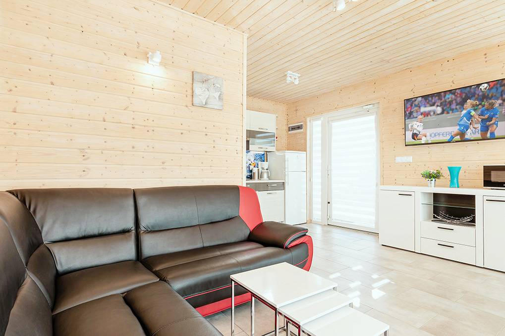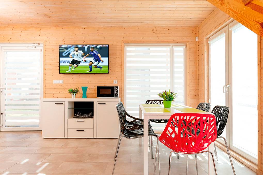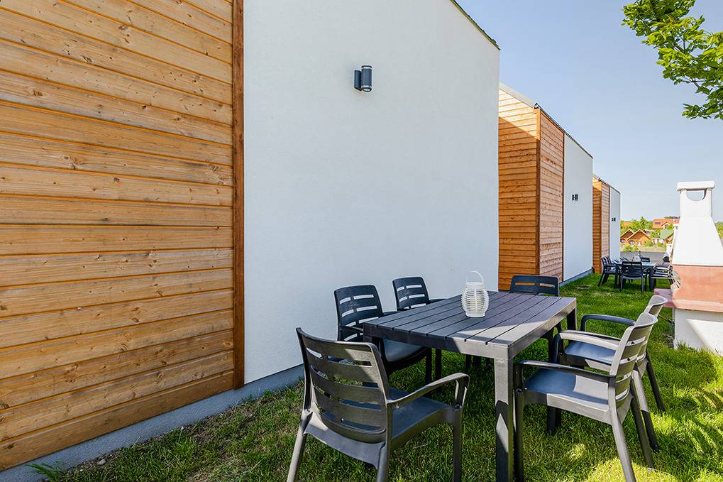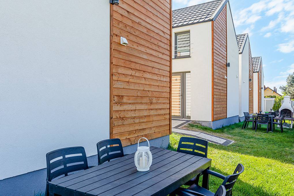 Haus: Gepflegte Ferienhausanlage auf einem umzäunten Grundstück. Schöne Ferienhäuser mit freundlicher, wohnlicher Einrichtung. Kostenloses Internet über W-Lan. E-Heizung. Terrasse mit Sitzmöbeln, Grill. Kleiner Spielplatz (Schaukel, Rutsche, Sandkasten) zur gemeinschaftlichen Nutzung. 1 Pkw-Stellplätze/Haus auf dem videoüberwachten, abgeschlossenen Grundstück.