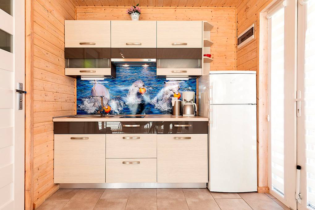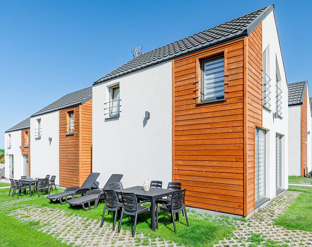 PL 31.6 Ferienhaus 2-6 Pers. Komfortables 3-Zimmerhaus mit ca. 60 qm Wohnfläche über 2 Etagen. Parterre: Wohn-/Essraum mit Ecksofa (Ausziehcouch 2 Pers.), Flachbild Sat-TV mit deutschen Programmen, Esstisch, kleiner Küchenzeile (2 E-Platten, Abzugshaube, Mikrowelle, Spülmaschine). Bad: Du, Wb, WC. 1. Etage: offenes 3-Bettzimmer mit Doppelbett, Einzelbett. Dahinter weiteres 3-Bettzimmer mit Doppelbett, Einzelbett. Terrasse mit Sitzmöbeln, Grill.