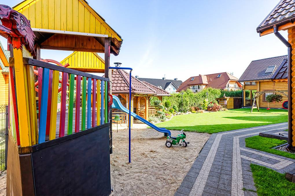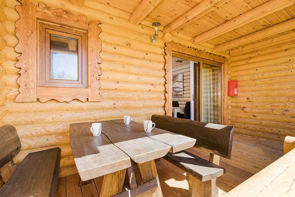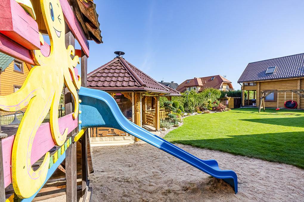 Haus: Schöne Ferienhausanlage mit 7 neuen Holzchalets. Moderne, geschmackvolle Einrichtung. Rustikaler Flair durch Holzvertäfelung im ganzen Haus. E-Heizung, teils Fußbodenheizung. Kostenloses Internet über Wi-Fi. Terrasse mit Sitzmöbeln, Grill, anschließend Rasenfläche. Kleiner Spielplatz (Schaukel, Rutsche, Sandkasten) zur gemeinschaftlichen Nutzung. 1 Pkw-Stellplatz/Haus.
