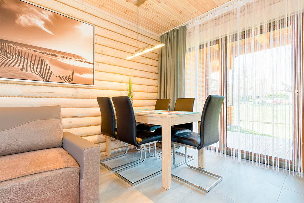 PL 31.13 Ferienhaus 2-6 Pers.: Komfortables 3-Zimmer-Reihenhaus mit ca. 60 qm Wohnfläche über 2 Etagen. Parterre: Wohn-/Essraum mit Ecksofa, Flachbild Sat-TV (deutsche Programme), Esstisch, Küchenzeile (2 Induktionsplatten). Bad: Du, Wb, WC. 1. Etage: 3-Bettzimmer mit franz. Doppelbett, Einzelbett, Balkon. 3-Bettzimmer mit franz. Doppelbett, Einzelbett