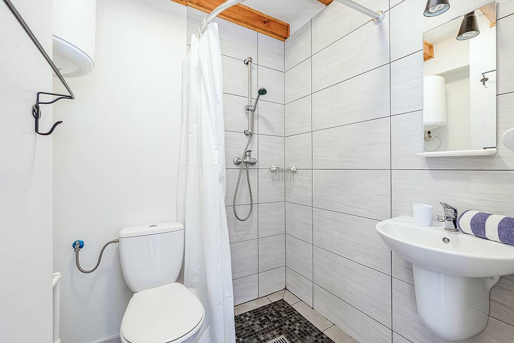 Haus: Schöne Ferienhausanlage mit 8 Holzblockhäusern. Freundliche Ferienhäuser mit funktionaler Einrichtung. Kostenloser Internetzugang (WiFi). Heizung mit E-Radiatoren, Warmwasser über E-Boiler (50 l). Terrasse mit Sitzmöbeln. In der Anlage: großer Kinderspielplatz. 1 Pkw-Stellplatz/Ferienhaus auf umzäuntem Grundstück.