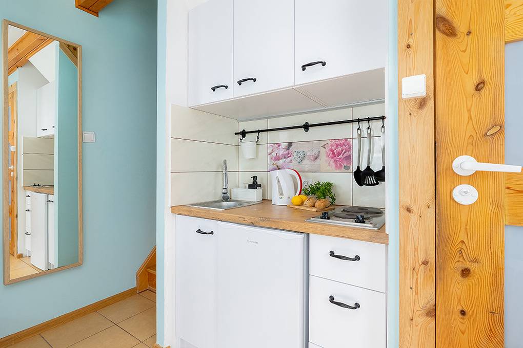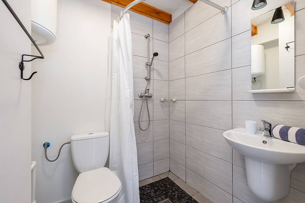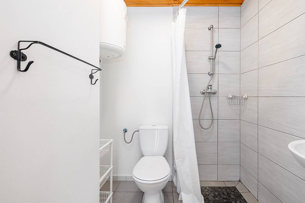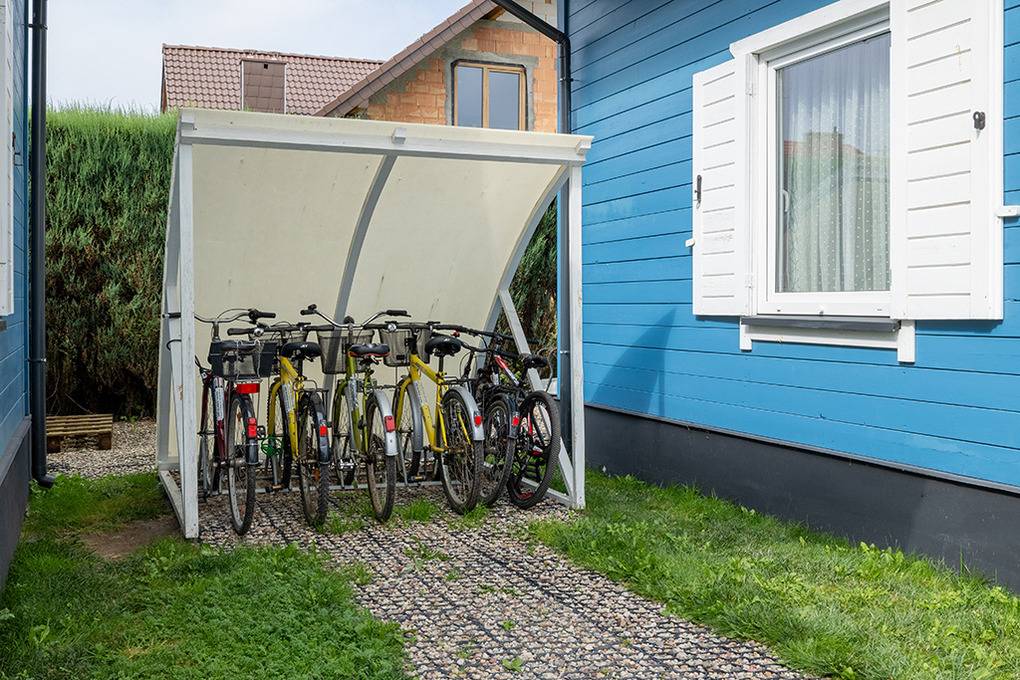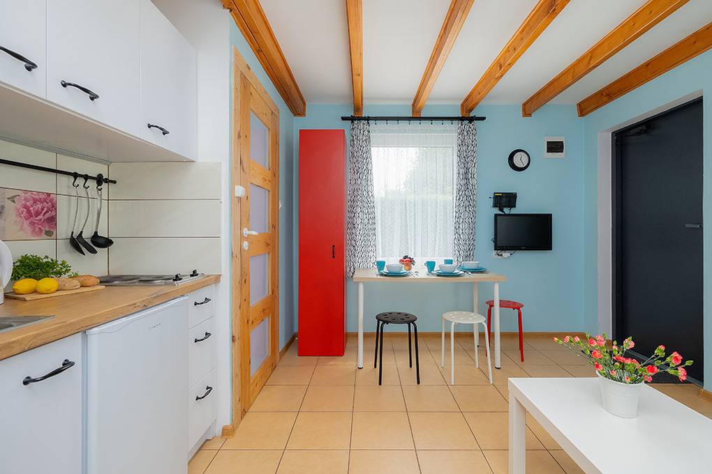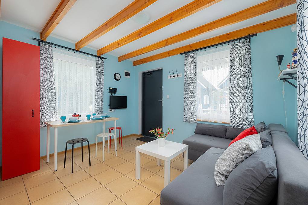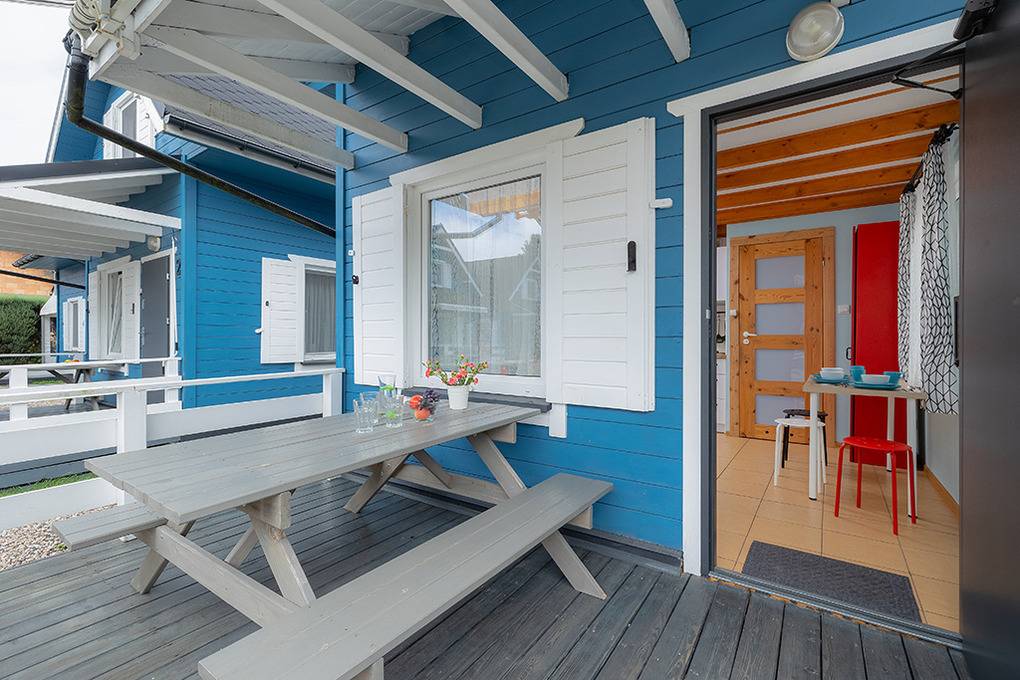 Haus: Schöne Ferienhausanlage mit 8 Holzblockhäusern. Freundliche Ferienhäuser mit funktionaler Einrichtung. Kostenloser Internetzugang (WiFi). Heizung mit E-Radiatoren, Warmwasser über E-Boiler (50 l). Terrasse mit Sitzmöbeln. In der Anlage: großer Kinderspielplatz. 1 Pkw-Stellplatz/Ferienhaus auf umzäuntem Grundstück.