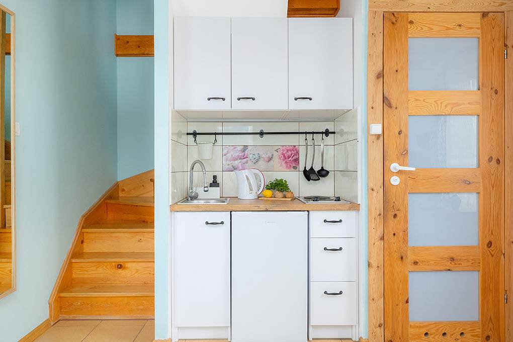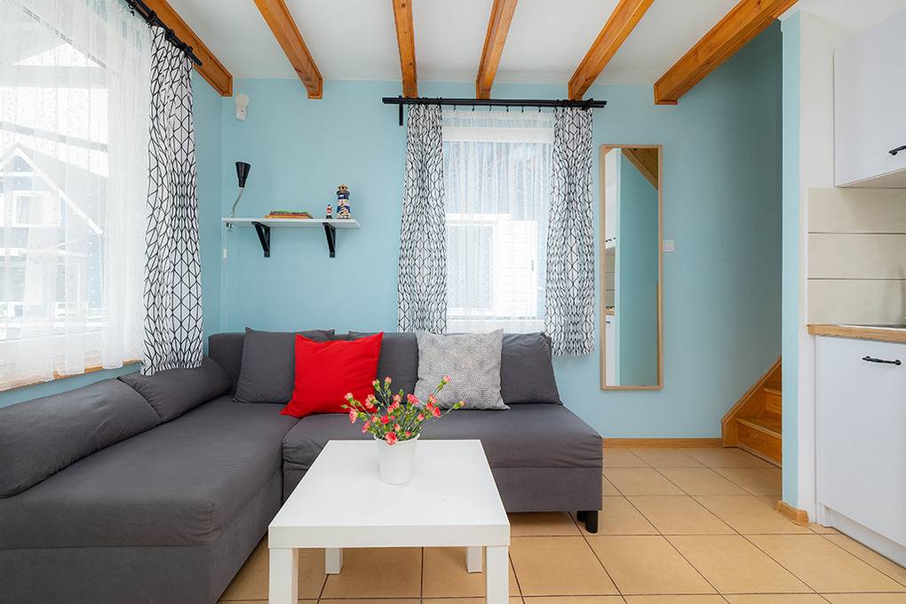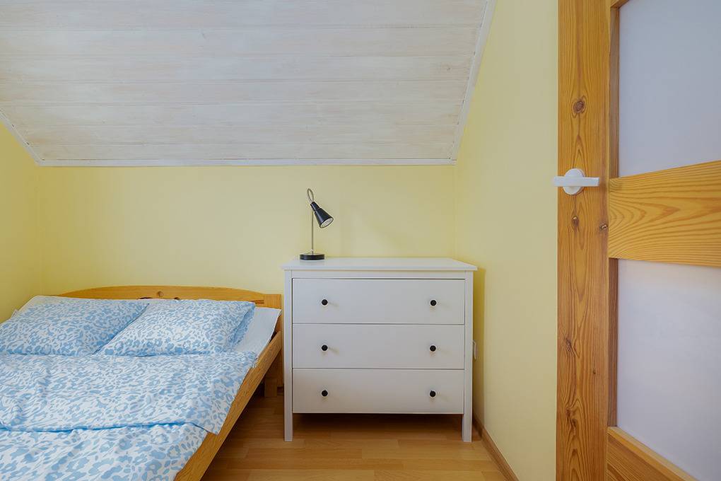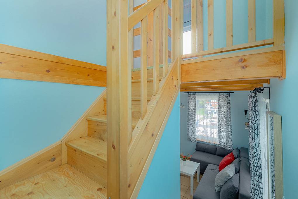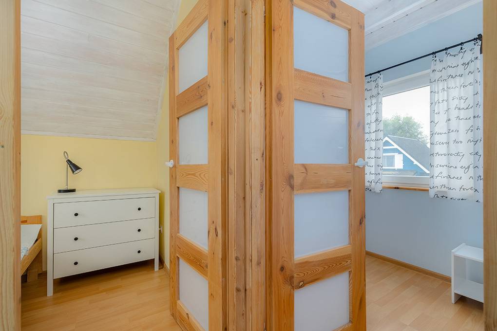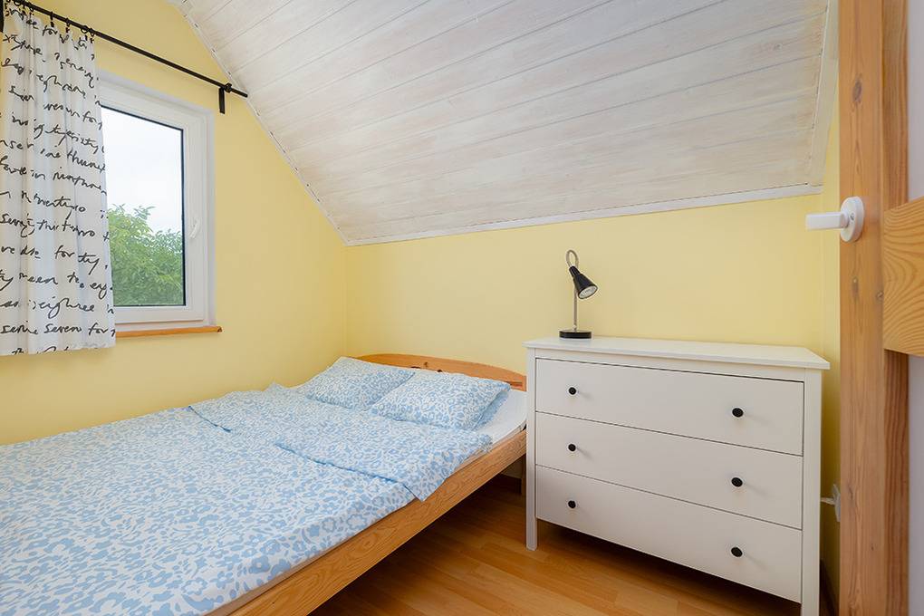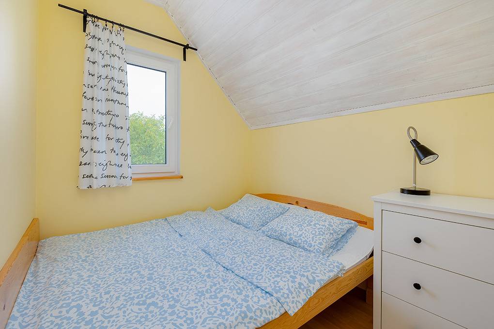PL 31.21 Ferienhaus 2-6 Pers.: 3-Zimmerhaus mit ca. 40 qm Wohnfläche über 2 Etagen. Parterre: Wohn-/Essraum mit Ausziehcouch (2 Pers.), Sat-TV, Esstisch, Küchenzeile (2 E-Platten). Bad/WC. 1 Etage: Doppelzimmer. Kleines 2-Bettzimmer.