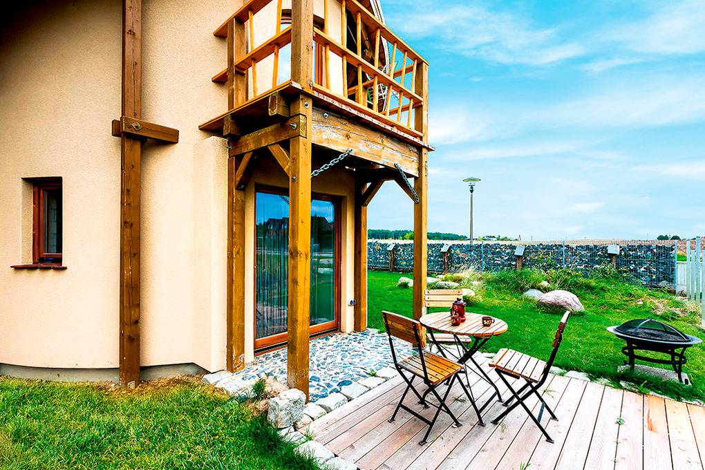 Haus: Drei schöne, komfortable Ferienhäuser mit Kamin. Geschmackvolle, moderne Einrichtung. E-Heizung, teils Fußbodenheizung. Internet auf Wunsch gegen Gebühr. Balkon, Terrasse mit Sitzmöbeln, Grill. 2 Parkplätze/Haus auf umzäuntem Grundstück.