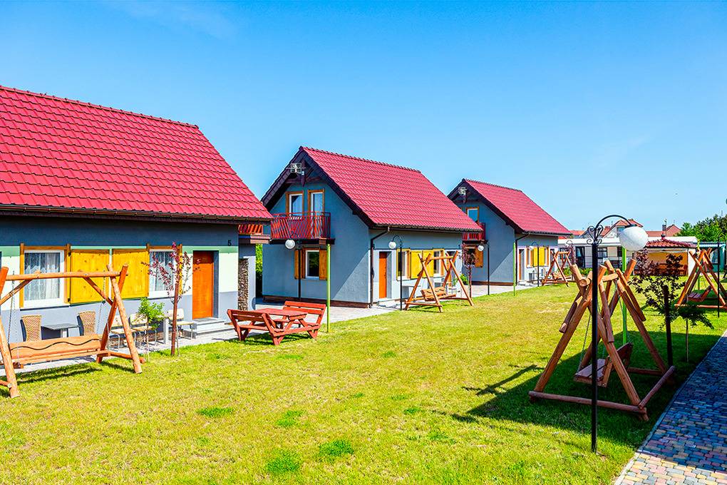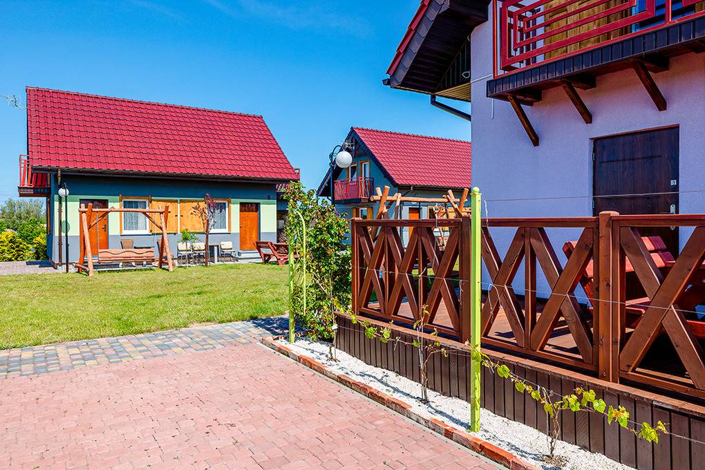 Drei neue Doppel-Ferienhäuser mit moderner Einrichtung. Kostenloses Internet über W-Lan. Zentralheizung, teils Fußbodenheizung. Kleiner Balkon. 1 Parkplatz/Haus auf dem umzäunten Grundstück.