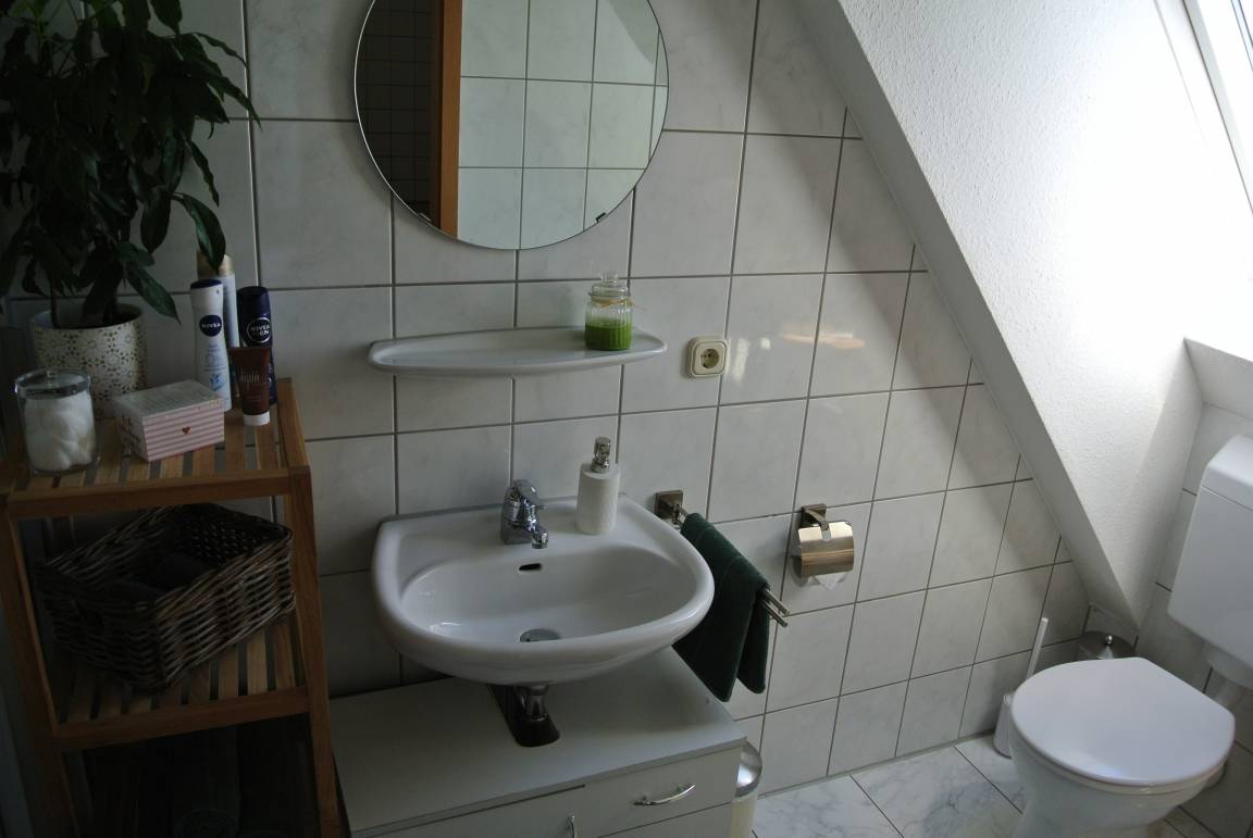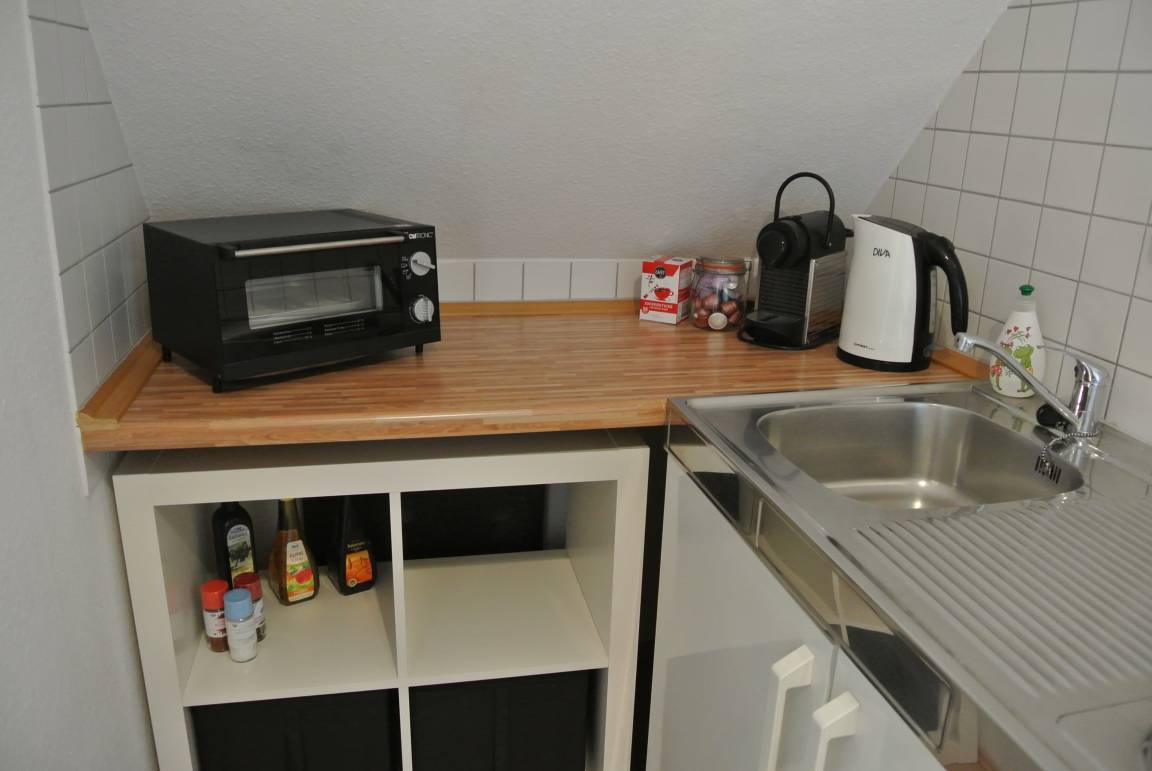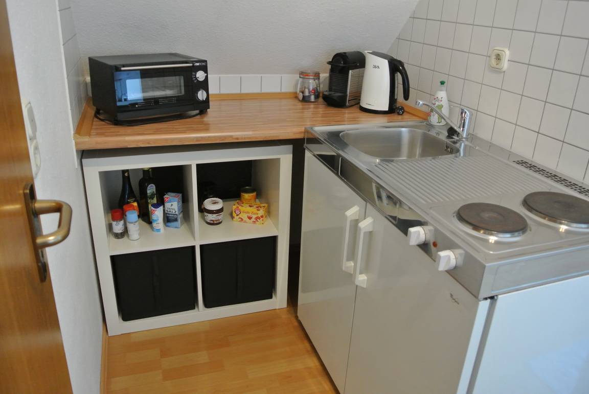 Die kleine, helle, Nichtraucher Wohnung welche modern eingerichtet ist bietet 2 Zimmer mit 1-2 Schlafplätzen, einer Küchenzeile mit Essplatz sowie ein kleines Badezimmer. Sie befindet sich im Dachgeschoss eines Mehrfamilien Hauses und ist über einen separaten Eingang erreichbar.