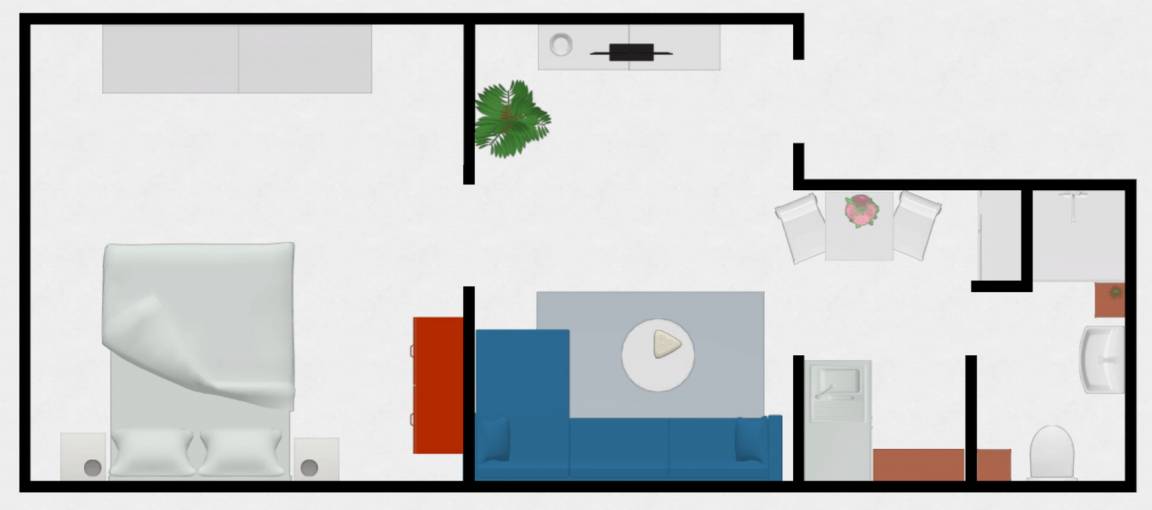 Rheinau Apartment - kleine, helle, Nichtraucher Wohnung mit Schlafzimmer, Wohnbereich mit Küchenzeile und Essplatz sowie ein kleines Badezimmer.