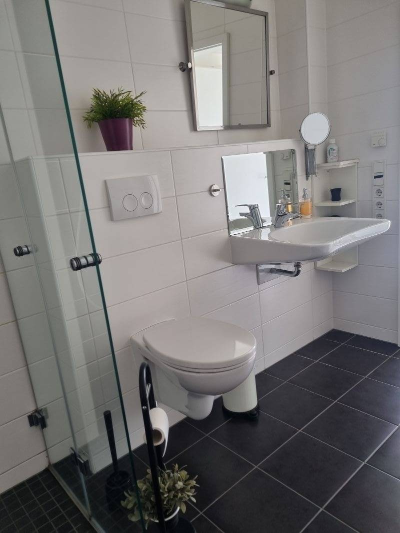 Diese stilvolle und modern eingerichtete Wohnung im Erdgeschoss verfügt über einen eigenen Eingang und ist komplett barrierefrei. Die Wohnung ist gut geschnitten und bietet mit separaten Schlafzimmer und großzügigen Wohn- Essbereich Platz für gemütliche Stunden. Das Badezimmer bietet Rollstuhlfahrern vollen Komfort. Die vollausgestattet Terrasse lädt zum Verweilen ein.