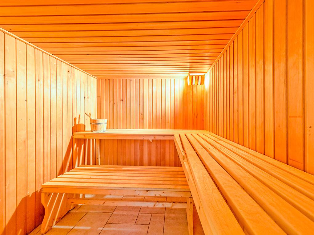 Parterre: Zwei Doppelzimmer mit Bad (Du, Wb, WC). 4-Bettzimmer mit Etagenbetten. Bad: Du, Wb, WC. Sauna.