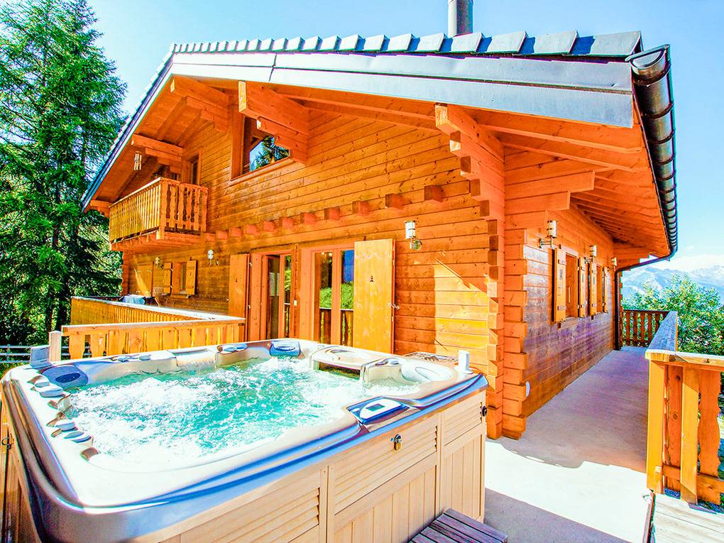 Haus: Exklusives Chalet mit Sauna und Außenwhirlpool. Großzügiges 8-Zimmer-Chalet mit 270 qm Wohnfläche über 3 Etagen. Rustikal-gediegene Einrichtung, gemütliches Ambiente durch Holzvertäfelung in fast allen Räumen. 7 Schlafzimmer, 7 Bäder! Waschmaschine, Trockner. Internetzugang über W-Lan. Skiraum. Fußbodenheizung. Terrasse, Balkon. Außenwhirlpool mit Blick auf die Bergwelt (Nutzung gegen Gebühr). 4 Pkw-Stellplätze am Haus. Hinweis: Mindestens einer der Mitreisenden muss 25 Jahre oder älter sein!