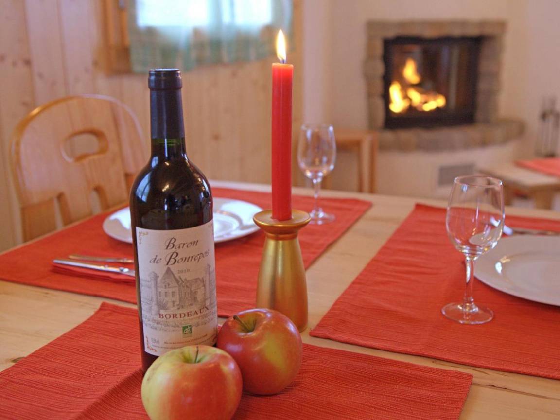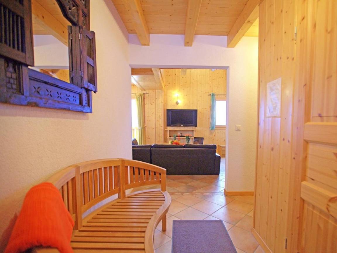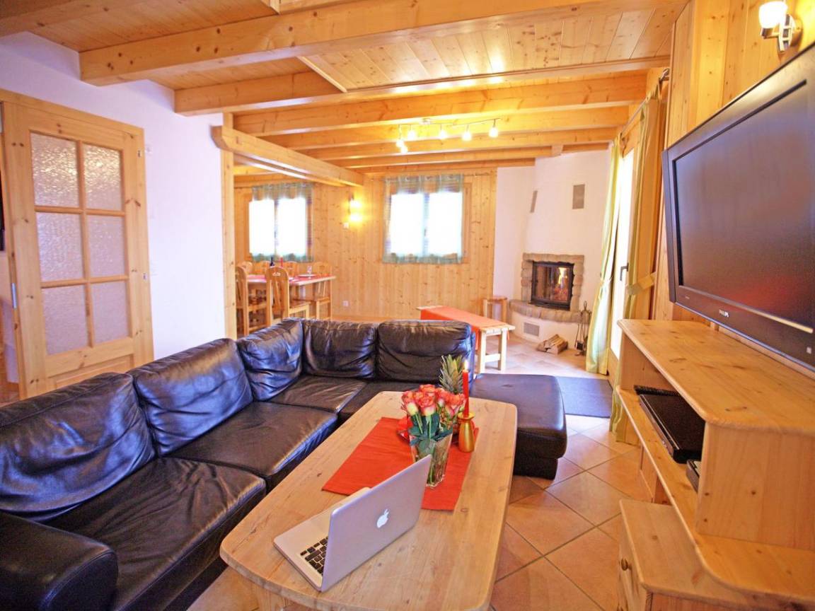 Fläche von ungefähr 275 m². Wohnzimmer mit Sofa, Kamin. 5 Schlafzimmer mit Doppelbett. Schlafzimmer mit Stockbetten. Schlafzimmer mit 2 Einzelbetten. Schlafzimmer mit Doppelbett, Einzelbett. Küche mit Fonduegerät, Backofen, Geschirrspülmaschine, Mikrowellenherd, elektronische Herdplatten, Kühl-Gefrier-Kombination. Badezimmer mit Waschmaschine, Wäschetrockner. 7 Waschräume. separates WC. Terrasse. Balkon. Die oberen Betten sind nicht für Kinder unter 6 Jahren geeignet.