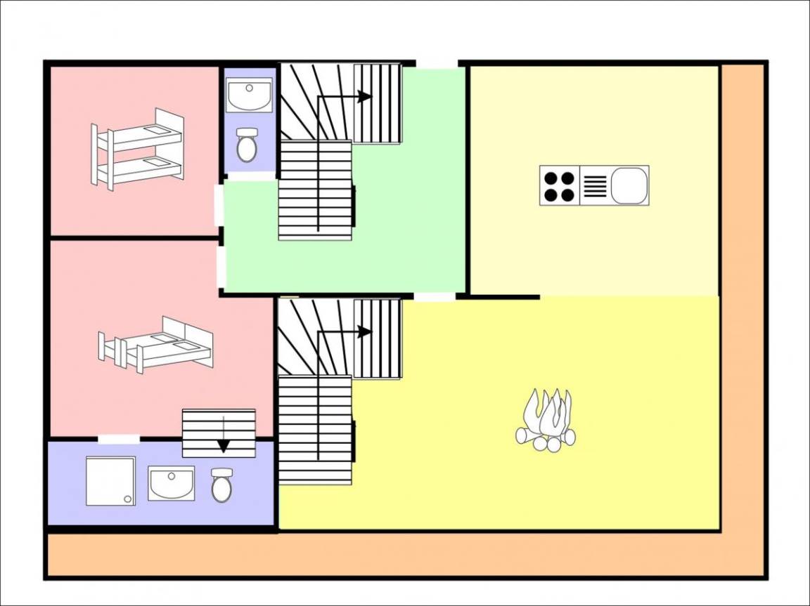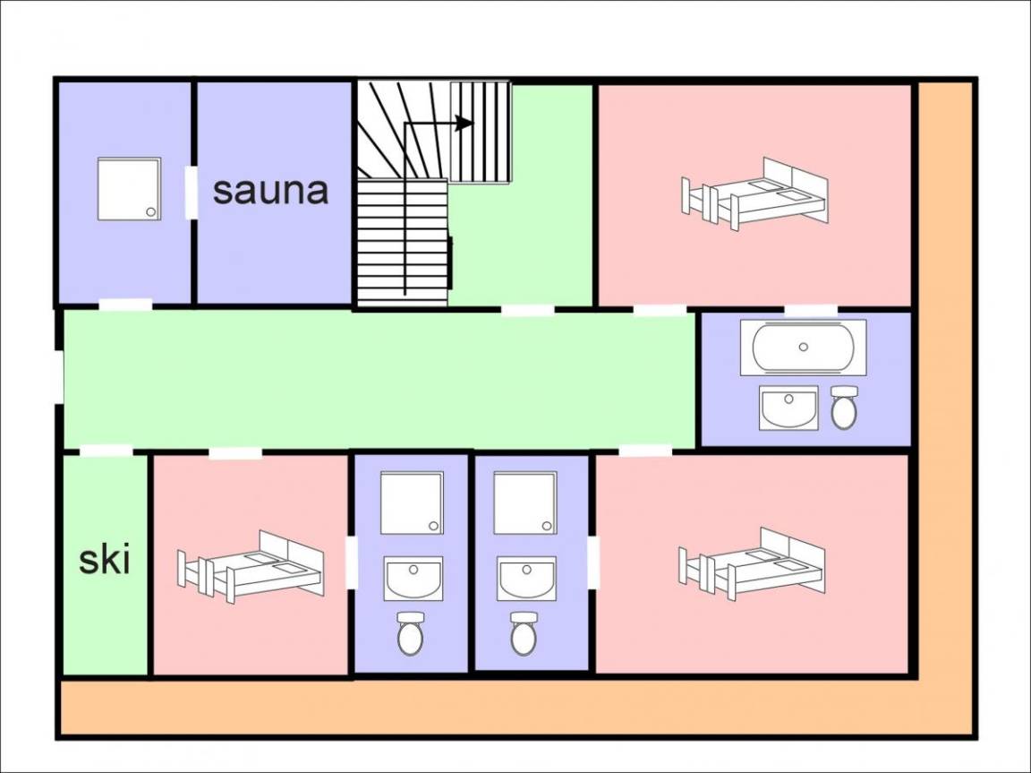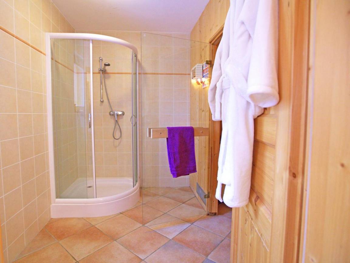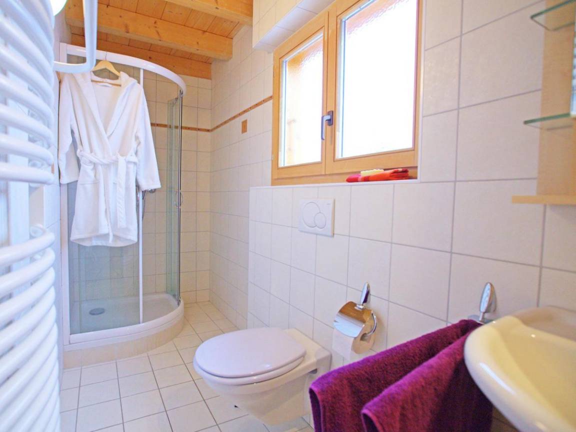 Fläche von ungefähr 275 m². Wohnzimmer mit Sofa, Kamin. 5 Schlafzimmer mit Doppelbett. Schlafzimmer mit Stockbetten. Schlafzimmer mit 2 Einzelbetten. Schlafzimmer mit Doppelbett, Einzelbett. Küche mit Fonduegerät, Backofen, Geschirrspülmaschine, Mikrowellenherd, elektronische Herdplatten, Kühl-Gefrier-Kombination. Badezimmer mit Waschmaschine, Wäschetrockner. 7 Waschräume. separates WC. Terrasse. Balkon. Die oberen Betten sind nicht für Kinder unter 6 Jahren geeignet.