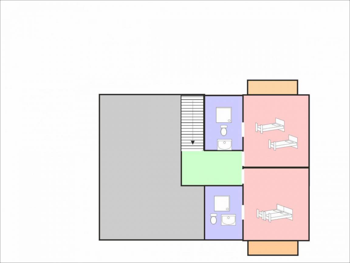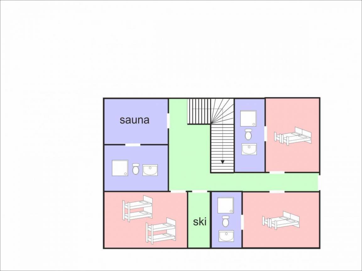 Fläche von ungefähr 270 m². Wohnzimmer mit Schwedenofen. 4 Schlafzimmer mit Doppelbett. Schlafzimmer mit 4 Stockbetten. 2 Schlafzimmer mit 2 Einzelbetten. Küche mit Fonduegerät, Wasserkocher, Kaffeemaschine, Backofen, Toaster, Geschirrspülmaschine, Gasherdplatten, 2 Kühl-und Gefrierschränke. 7 Waschräume mit Dusche, Waschbecken, WC. Balkon. Terrasse. Waschmaschine, Sauna. Die oberen Betten sind nicht für Kinder unter 6 Jahren geeignet.