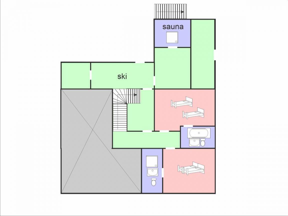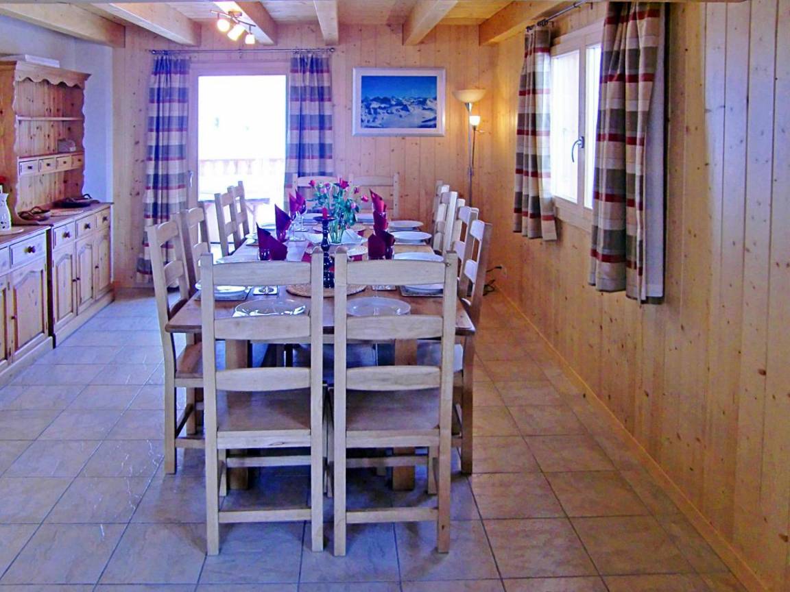 Fläche von ungefähr 210 m². Wohnzimmer mit Kamin. 2 Schlafzimmer mit Doppelbett. 2 Schlafzimmer mit 2 Einzelbetten. Schlafzimmer mit Doppelbett, Einzelbett. Schlafzimmer mit 3 Einzelbetten. Küche mit Fonduegerät, Raclettegerät, Kaffeemaschine, Backofen, Mikrowellengrill, Toaster, Geschirrspülmaschine, Glaskeramikkochfelder, Kühl-Gefrier-Kombination. Badezimmer mit Badewanne, Waschmaschine, WC. 5 Waschräume mit Dusche, Waschbecken, WC. separates WC. Terrasse. Balkon. Sauna.