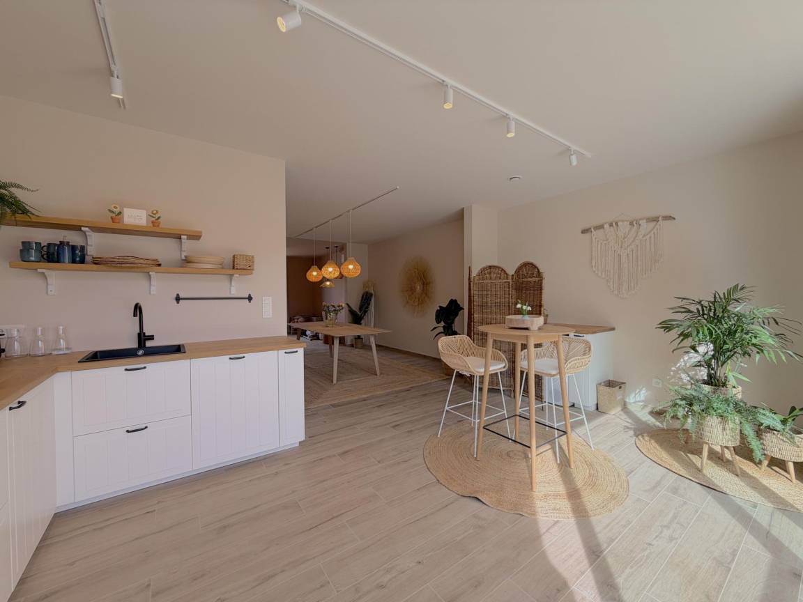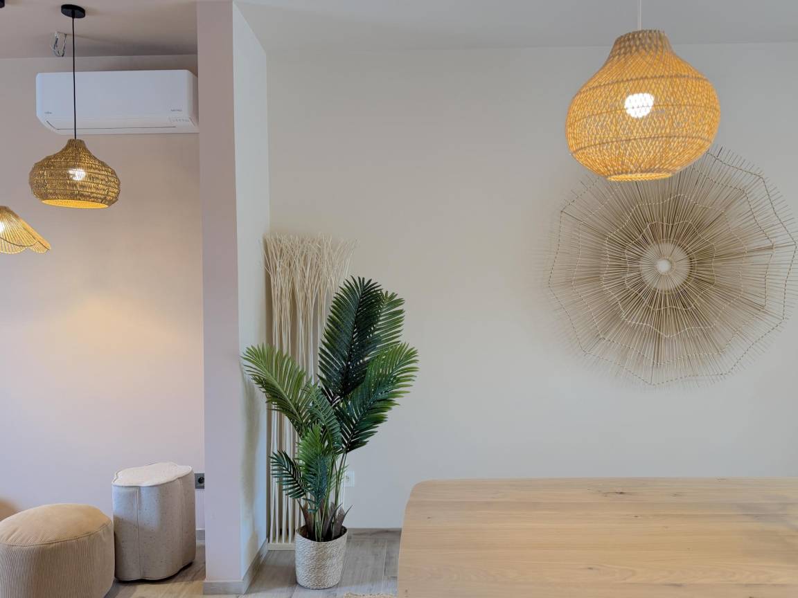 Layout : Parterre: Eingang, Küche mit Kochplatte(4 Kochplatten, Induktion), Wasserkocher, Dunstabzugshaube, Kaffeemaschine(nespresso cups), Backofen, Mikrowelle, Geschirrspüler , Wohn/Esszimmer mit TV(smart TV), Esstisch(10 Personen), Klimaanlage , Toilette, Wirtschaftsraum mit Wäschetrockner, Waschmaschine , 1x Hochstuhl