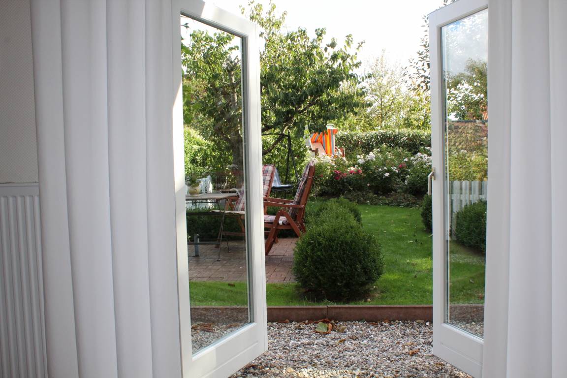 Ferienwohnung, ca. 45 m² groß im Erdgeschoss und Dachgeschoss mit freundlicher und moderner Ausstattung und eigener Terrasse. Keramischer Bodenbelag bzw. Laminatboden.
