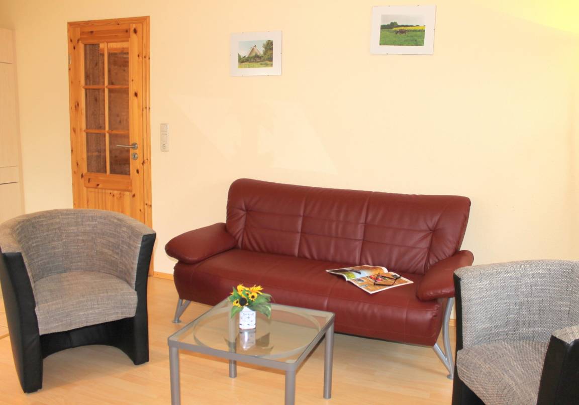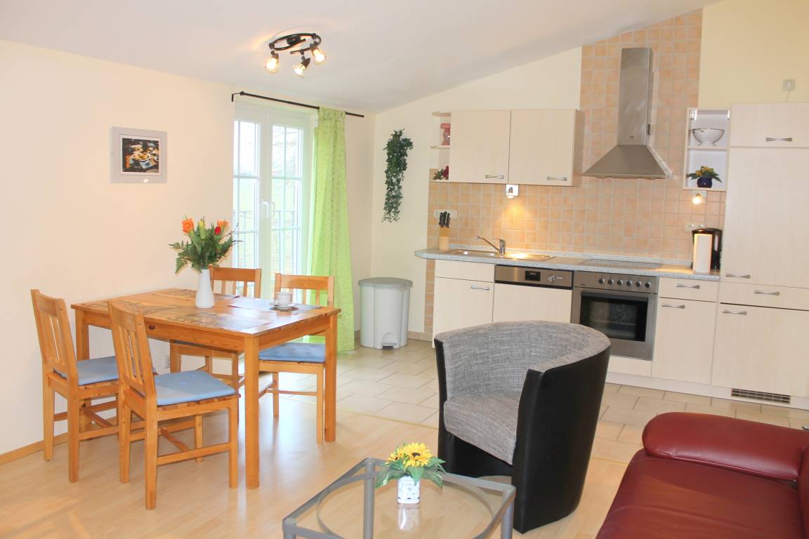 Die Wohnung "Nr. 1" liegt im ersten Stock und bietet Platz für max. 3 Personen. Die Wohnfläche der ca. 45 m² großen Unterkunft verteilt sich auf ein Wohn- / Esszimmer mit offener Küchenzeile, ein separates Schlafzimmer sowie auf ein Badezimmer. Der helle Wohnbereich ist mit einer großen gemütlichen Sitzecke und einem Fernseher versehen - die offene angrenzende Küchenzeile ist u.a. mit einem Backofen, einer Geschirrspülmaschine und weiteren Küchengeräten ausgestattet, ein Essplatz ist vorhanden. Über den Flur gelangen Sie ins separate Schlafzimmer sowie ins Badezimmer. Das Schlafzimmer ist mit einem Doppelbett, einem Einzelbett, einem Kinderbett sowie einem Kleiderschrank versehen. Das Badezimmer verfügt über eine Dusche sowie eine Handtuchheizung. Die komfortabel eingerichtete Ferienwohnung bietet Ihnen eine schöne Aussicht über das Land.