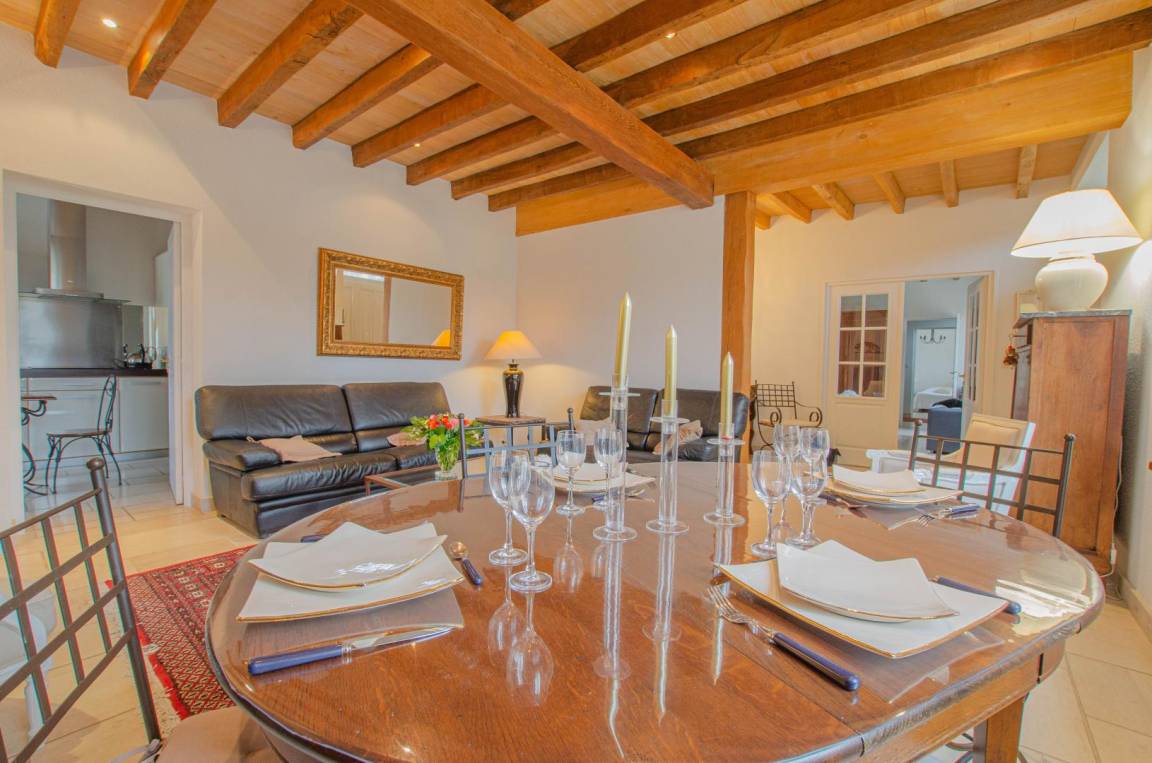 „Le gîte est extrêmement confortable, très propre, très bien équipé, comme une maison qu’on habite toute l’année. Bravo pour le kit petit déjeuner, thé, café, sucre, c’est bien utile. Il y a entre autres, une magnifique armoire ancienne avec de la vaisselle pour les grands dîners en famille. Le jardin est superbe, très soigné, et il cadre parfaitement avec cette jolie maison. Il est clos, ce qui est idéal quand on a des enfants ou des chiens. Nos petites Pinschers se sont régalées à gambader partout. Nous reviendrons sûrement dans cette belle maison. Merci pour l’accueil et le ventilateur à notre arrivée.“