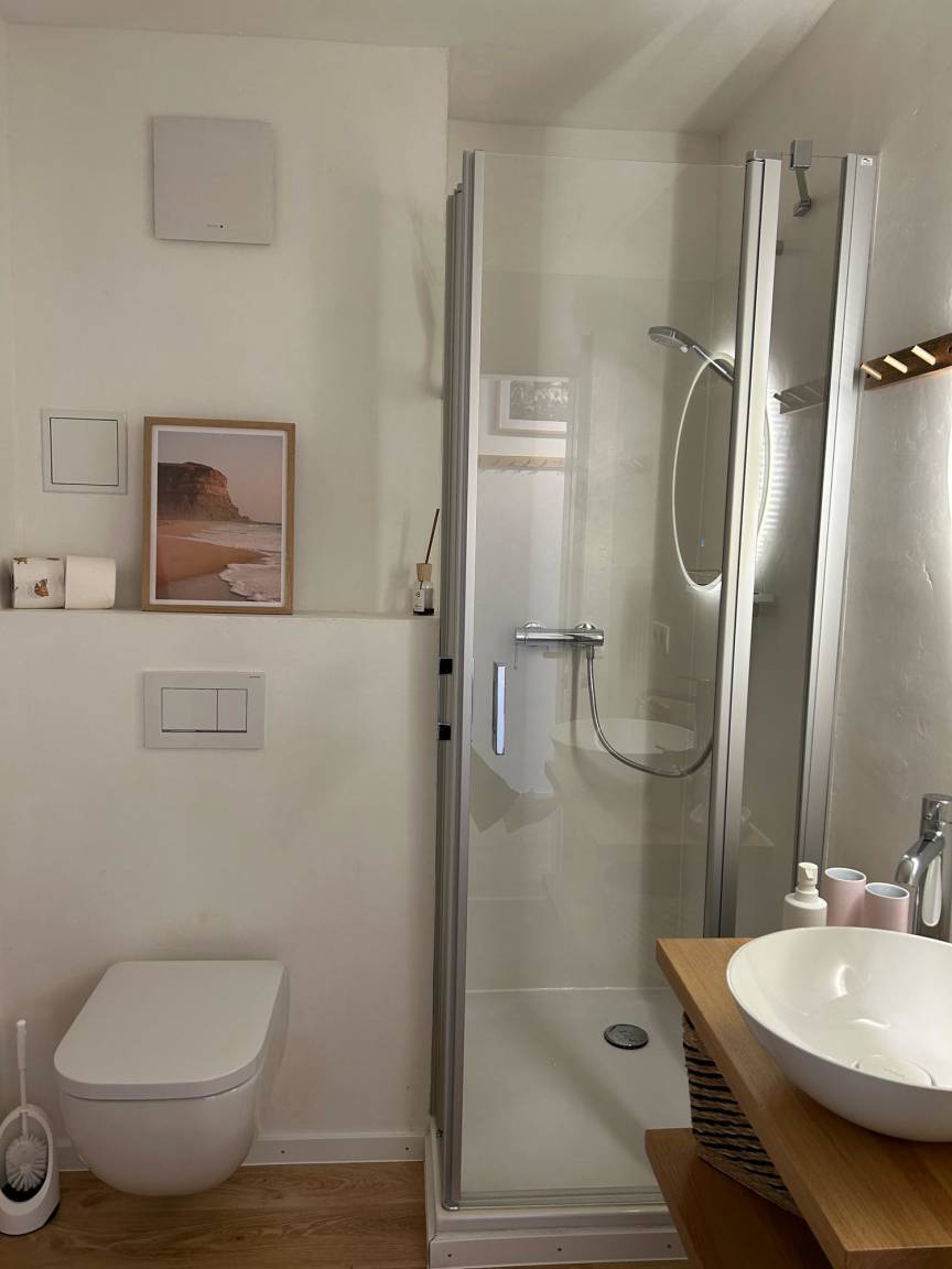 „Diese Ferienwohnung ist wirklich fantastisch. Schön eingerichtet, man erkennt schon die Liebe zum Detail. Die Ausstattung der Küche ist der Wahnsinn, man kann einfach wirklich alles machen, sogar Kuchen backen wenn man möchte. Die Dusche könnte für jemanden der etwas korpulent ist ein Problem werden, das Bad ist wirklich eng, aber auch dort hat man Gemütlichkeit rein gebracht, was wirklich schön ist. Wir waren wirklich gerne dort.“