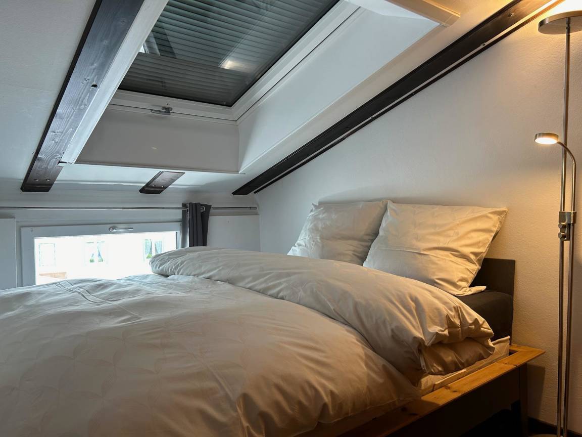 Das Besondere an diesem Ferienhaus ist das offene Konzept: Ein Schlafzimmer befindet sich auf der Galerie ohne Türe, während das andere Schlafzimmer mit einer Tür ausgestattet ist, um Privatsphäre zu gewährleisten. Die voll ausgestattete Küche mit einem gemütlichen Essbereich lädt zum gemeinsamen Kochen und Essen ein. Im Wohnzimmer können Sie sich auf der großen Couch entspannen und Ihre Lieblingssendungen auf dem Smart-TV genießen.