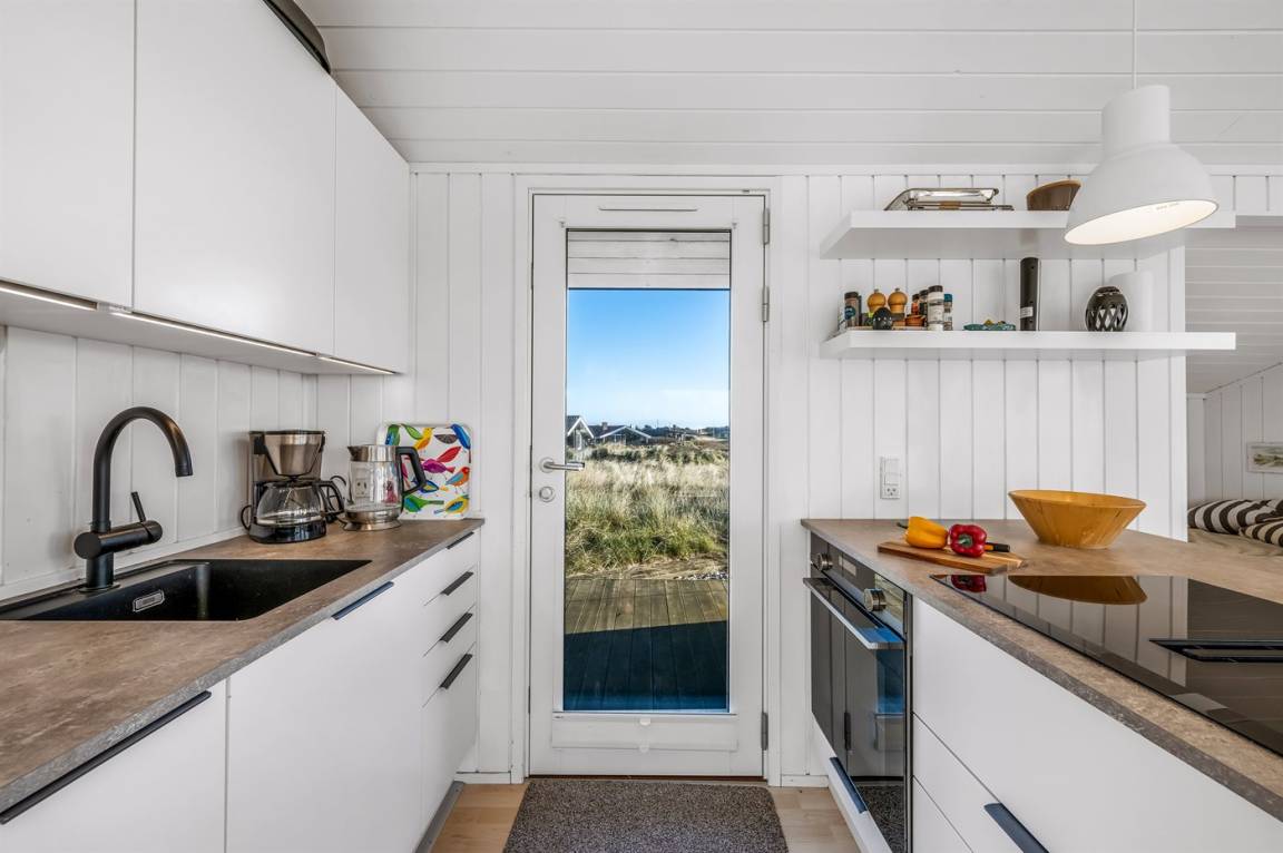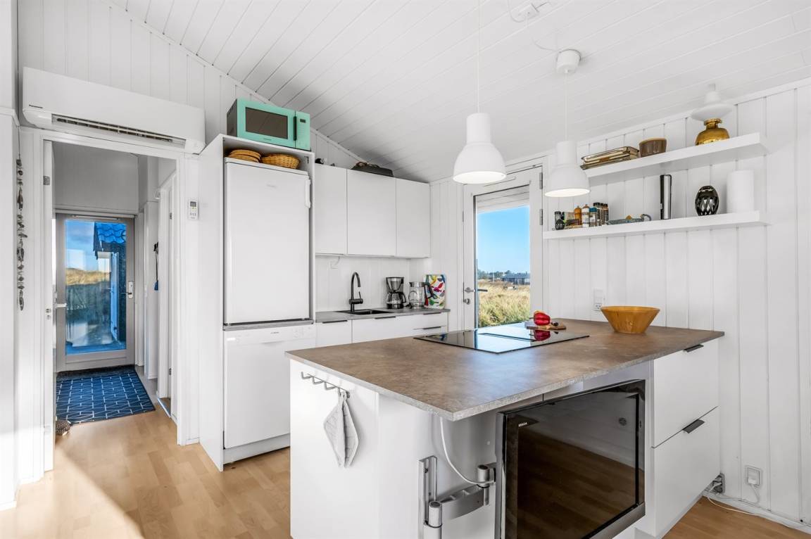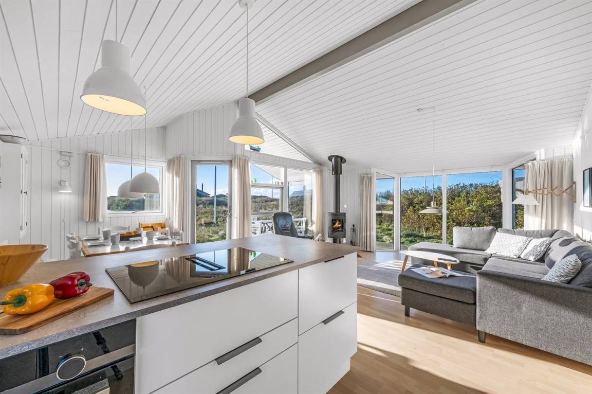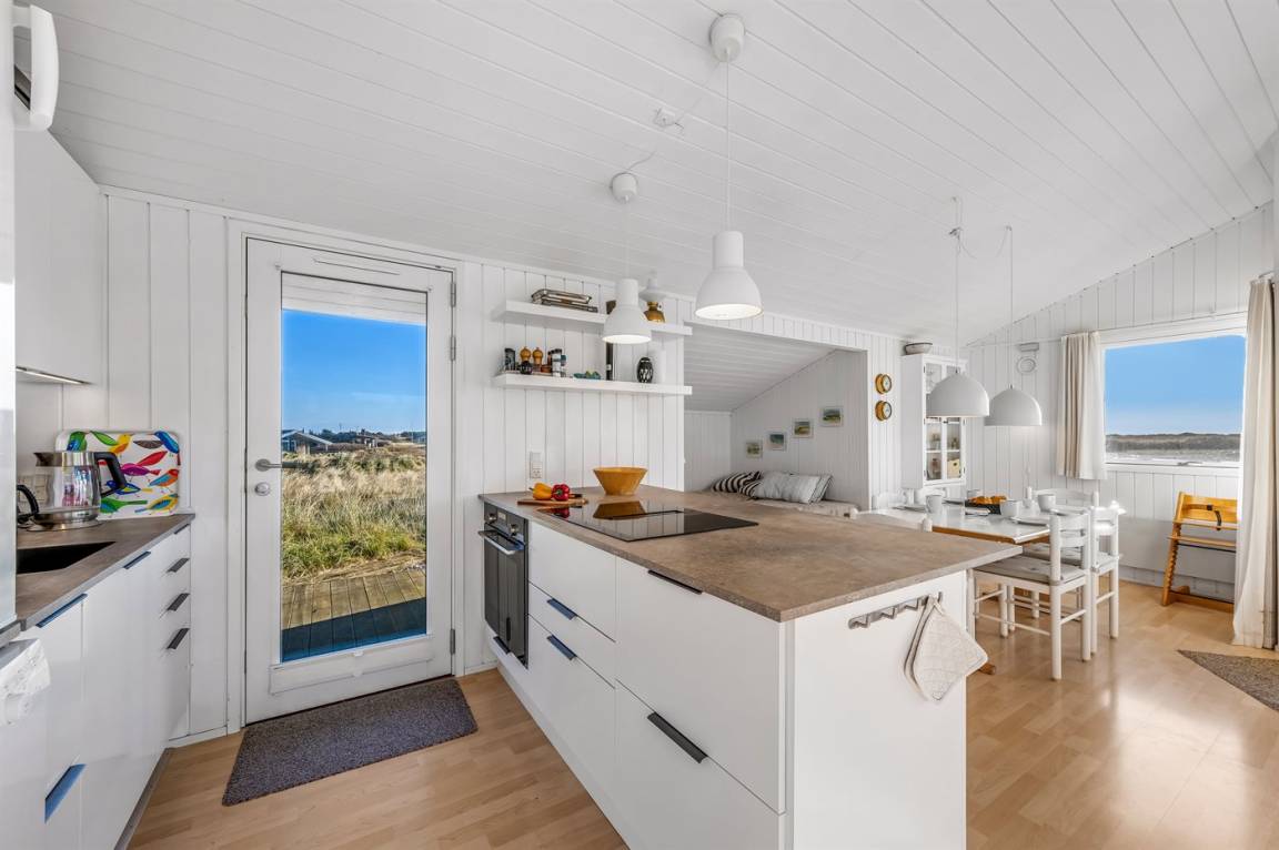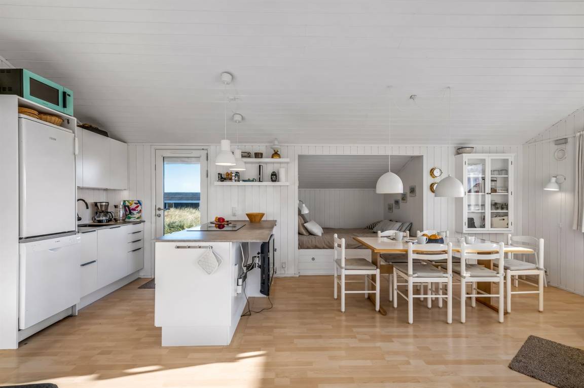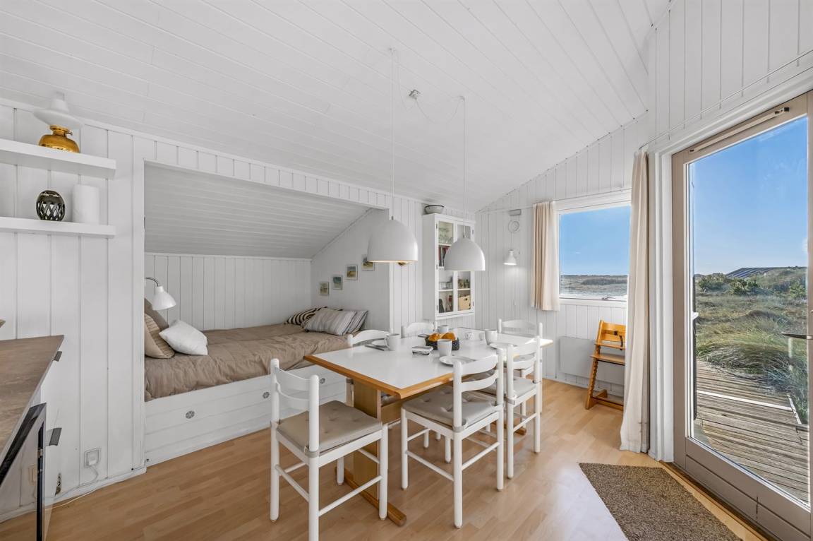 DraußenDie Ferienunterkunft liegt auf einem 2004 m² großen Naturgrundstück. Die Entfernung zum Meer beträgt 200 m. Die Entfernung zum Fjord beträgt 1500 m. Die nächste Einkaufsmöglichkeit liegt 1000 m entfernt. In einem Abstand von 5000 m gibt es einen Golfplatz. Es steht ein 50 m² Terrassenareal zur Verfügung. Außerdem gibt es 8 m² überdachte Terrasse. Geräteraum. Außendusche. Parkplatz auf dem Grundstück.