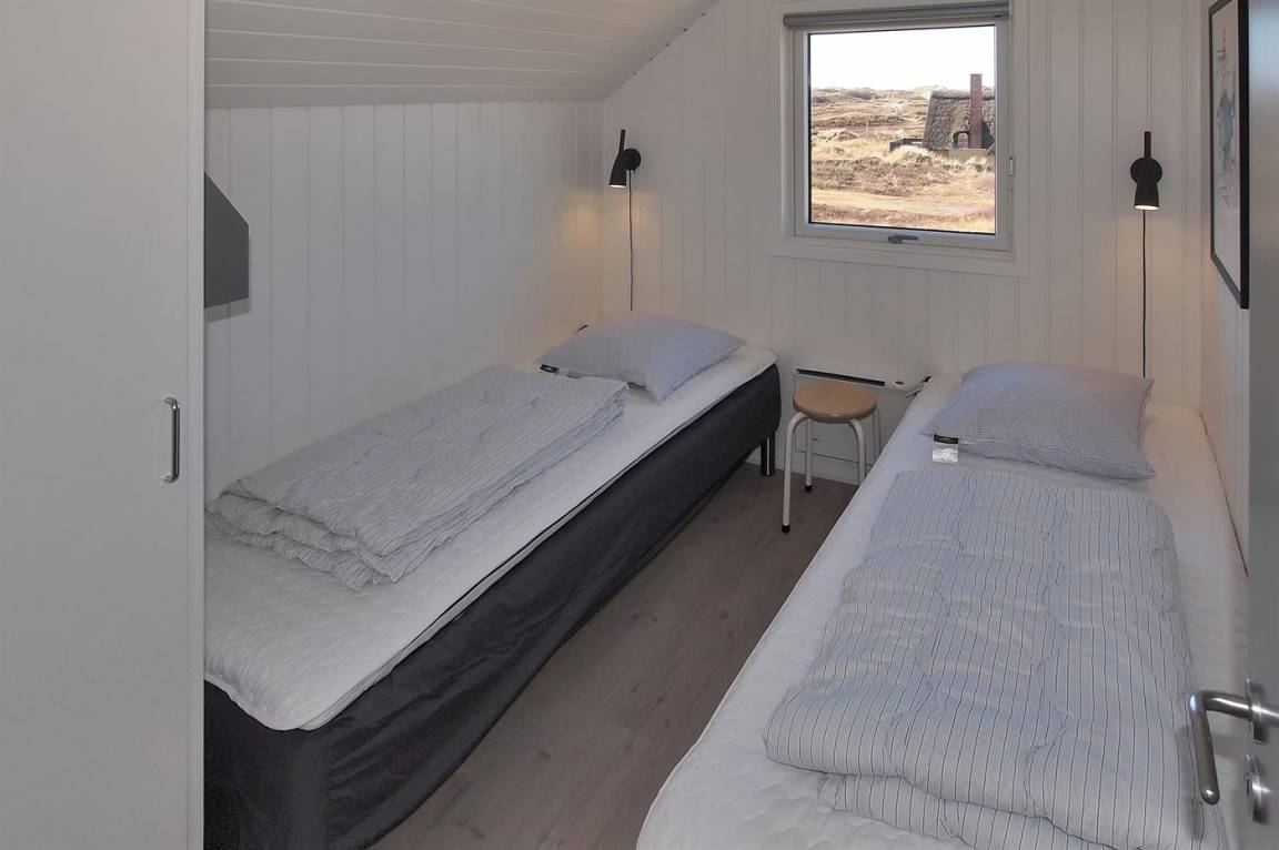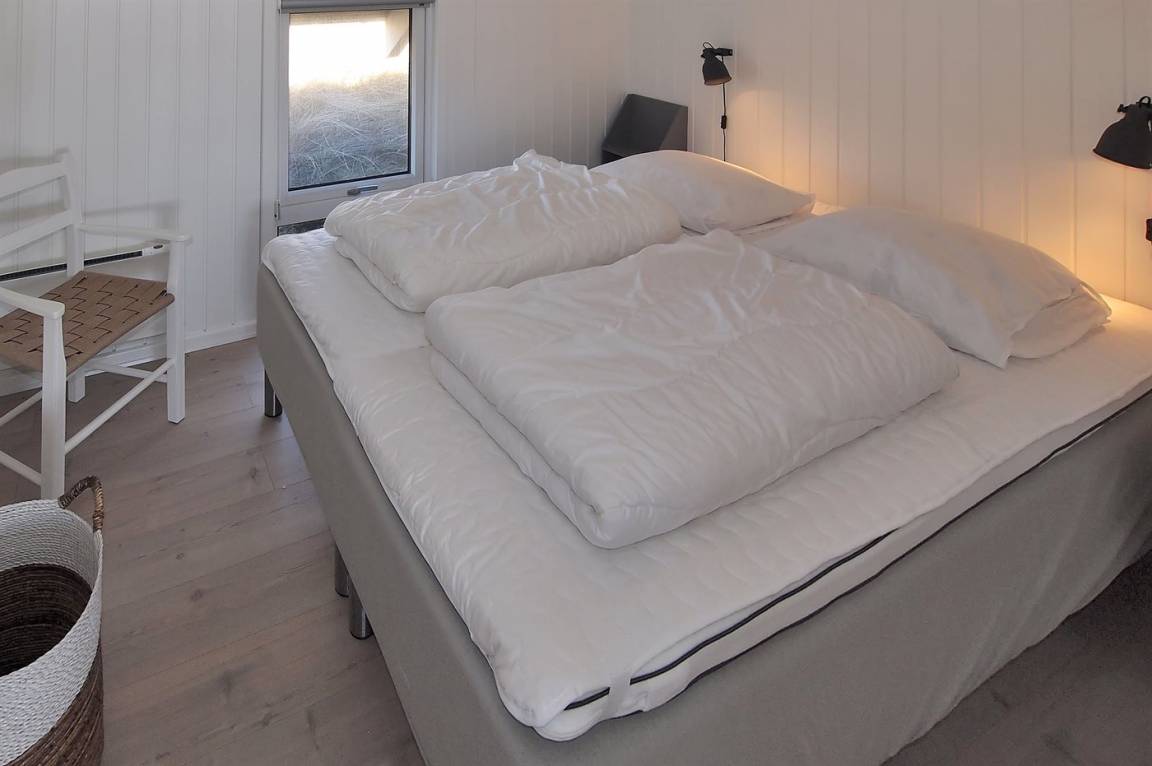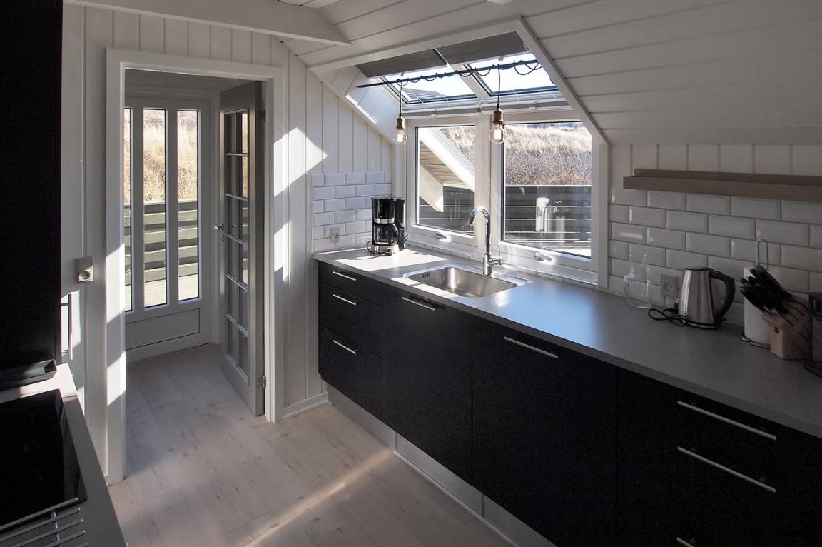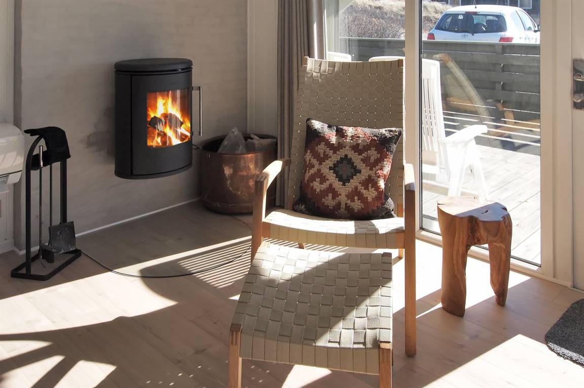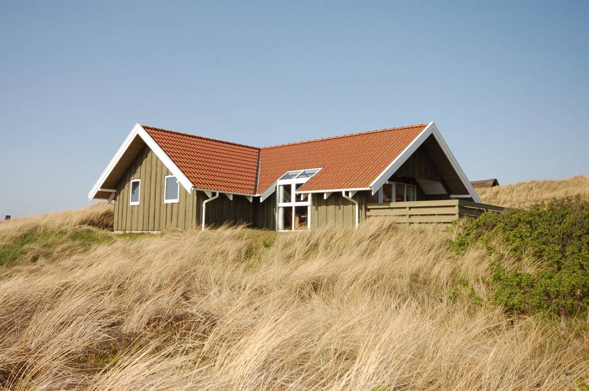 Fantastisch gelegenes und gepflegtes Ferienhaus mit Aussicht auf die Dünen vom Haus, Grundstück und Terrasse. Holzböden, jedoch beheizbare Klinkerböden in der Küche und im Flur sowie Teppichböden in den Zimmern. Es ist möglich, Golf zu spielen und angeln im Gebiet. Das Haus liegt im Gehabstand vom Zentrum Søndervigs entfernt.