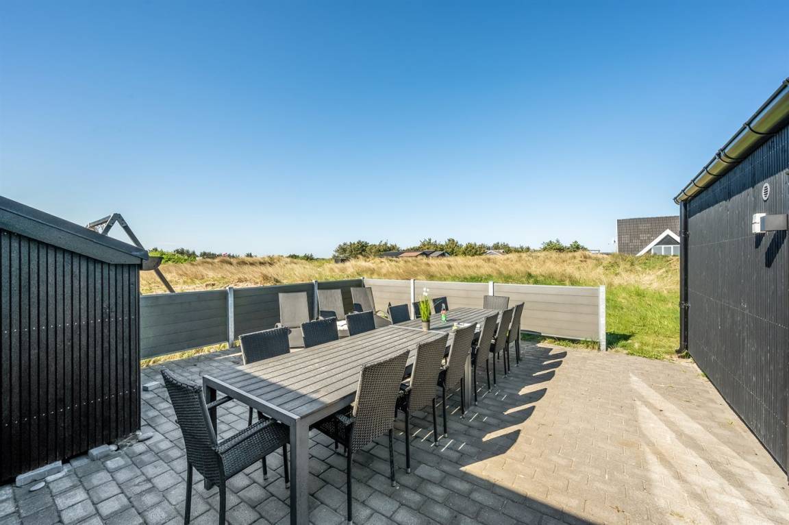DraußenDie Ferienunterkunft liegt auf einem 2000 m² großen Naturgrundstück. Die Entfernung zum Meer beträgt 900 m. Die nächste Einkaufsmöglichkeit liegt 3500 m entfernt. In einem Abstand von 5000 m gibt es einen Golfplatz. Es steht ein offenes Terrassenareal zur Verfügung. Geräteraum. Schaukel. Sandkasten. Es steht ein Grill zur Verfügung. Es ist ein Ladestecker für Elektroautos installiert. Mit einer Ladeleistung von 11 kW. Parkplatz auf dem Grundstück.