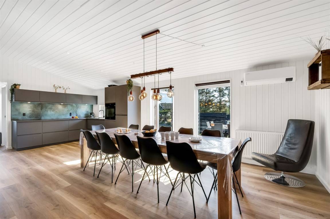Das Ferienhaus eignet sich für 12 Personen sowie 1 Kleinkind bis zu 3 Jahren. Die Ferienunterkunft hat eine Wohnfläche von 180 m² und wurde 1989 gebaut. 2025 wurde die Ferienunterkunft renoviert. Es ist erlaubt 2 Haustiere mitzubringen. Die Ferienunterkunft ist mit energiefreundlicher Luft-Luft- Wärmepumpe ausgestattet. Es gibt Erdwärme. Die Ferienunterkunft ist mit Waschmaschine ausgestattet. Wäschetrockner. Tiefkühlmöglichkeit mit 85 Liter Nutzinhalt. Es gibt außerdem einen Kaminofen. Für die jüngsten Feriengäste ist 1 Kinderhochstuhl vorhanden. Wickeltisch.