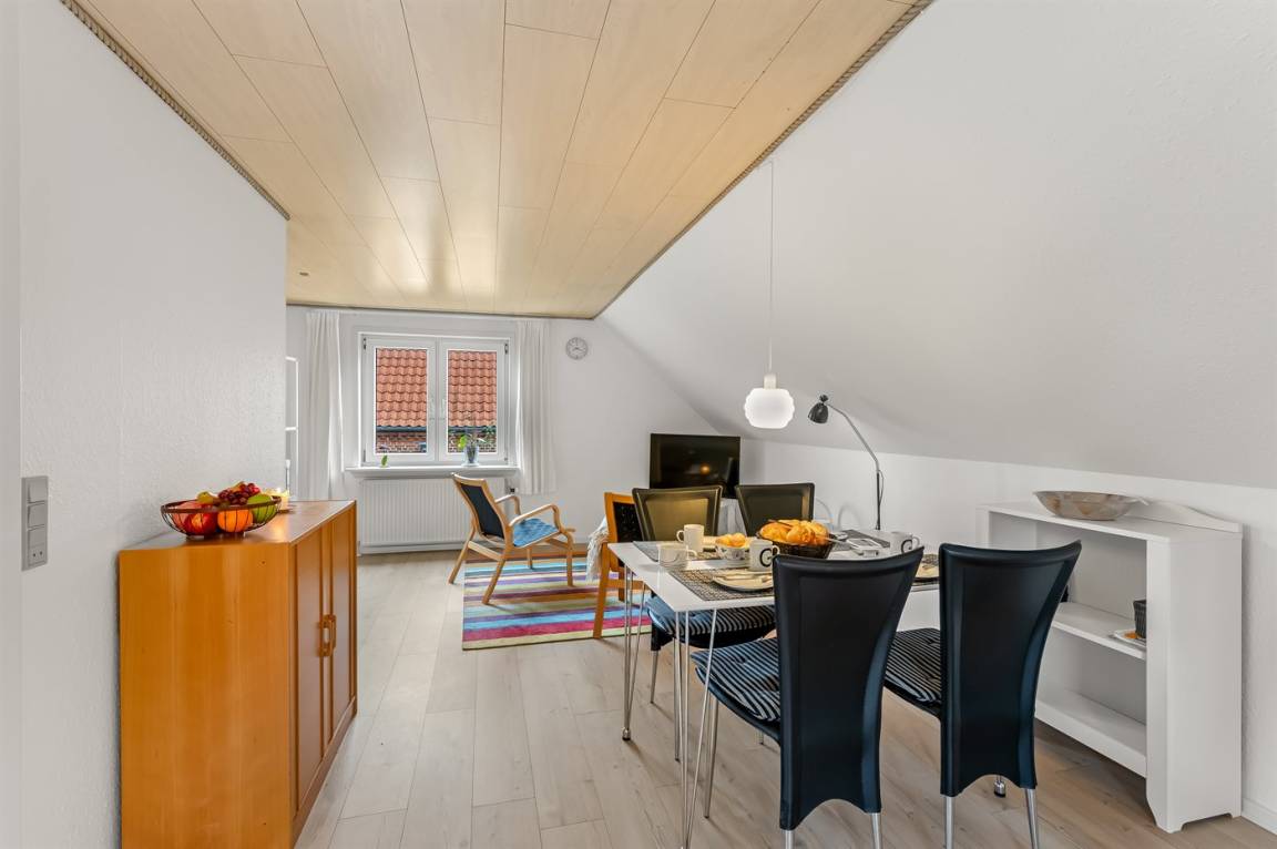 Die Wohnung liegt in der Nähe des Stadtzentrums, und du kannst die nächsten Restaurants und Geschäfte in wenigen Minuten zu Fuß erreichen. Das umliegende Grüngebiet verfügt über einen großen Spielplatz, der ein Highlight für die Kinder ist. Mache einen Spaziergang durch die gemütlichen, mit Kopfstein gepflasterten Straßen und genieße den Anblick der alten Häuser.