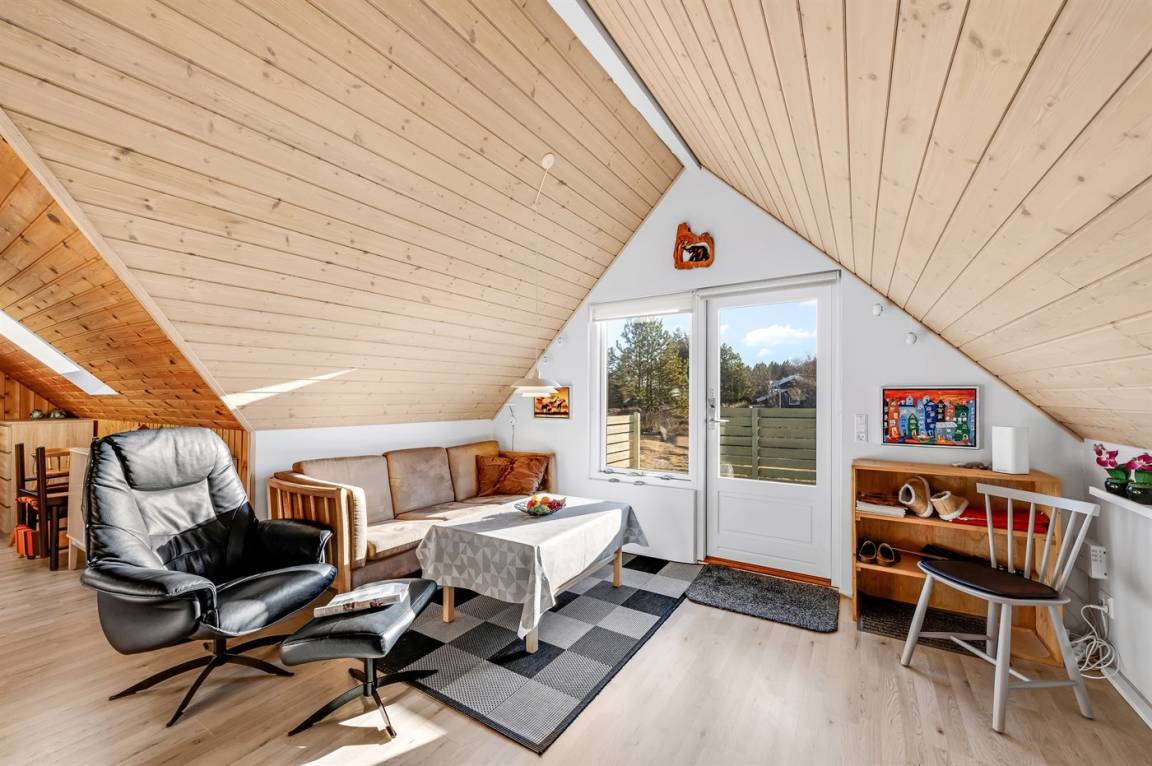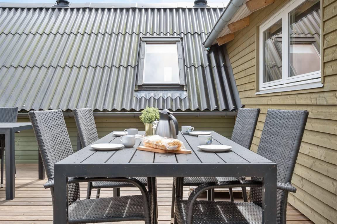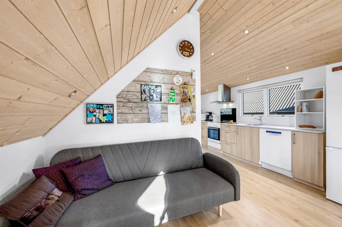 DraußenDie Ferienunterkunft liegt auf einem 2001 m² großen Naturgrundstück. Die Entfernung zum Meer beträgt 700 m. Die Entfernung zum Fjord beträgt 1000 m. Die nächste Einkaufsmöglichkeit liegt 3500 m entfernt. In einem Abstand von 4000 m gibt es einen Golfplatz. Es steht ein 60 m² Terrassenareal zur Verfügung. Schaukel. Sandkasten. Parkplatz auf dem Grundstück.
