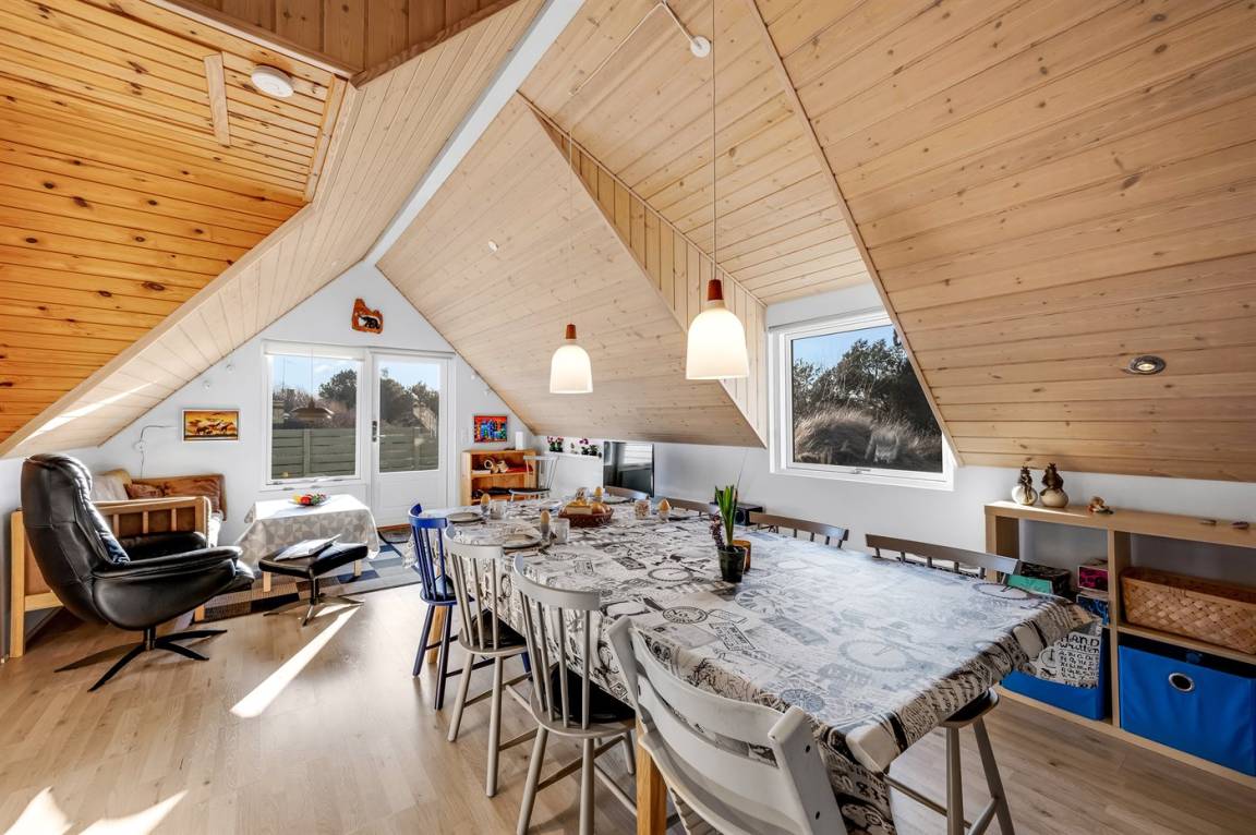 In diesem kinderfreundlich eingerichteten Ferienhaus können Jung und Alt das gemütliche Beisammensein genießen. Möchten Sie einen Ausflug unternehmen können Sie am Meer entlang zum 38 m hohen Leuchtturm Nr. Lyngvig wandern. Von der Spitze des Leuchtturms können Sie die phantastische Landschaft und das Meer von oben bewundern. Möchten Sie sich jedoch ganz einfach nur enspannen finden Sie auf der Terrasse beim Ferienhaus fast immer eine vor dem Wind geschützte Ecke.