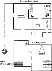 Die Ferienwohnung erstreckt sich über 96 m² auf zwei Etagen. Im Obergeschoss befinden sich zwei Schlafzimmer mit Doppelbetten sowie ein gemütlicher, offener Obergeschoss mit zwei Einzelbetten, den Kinder besonders lieben.