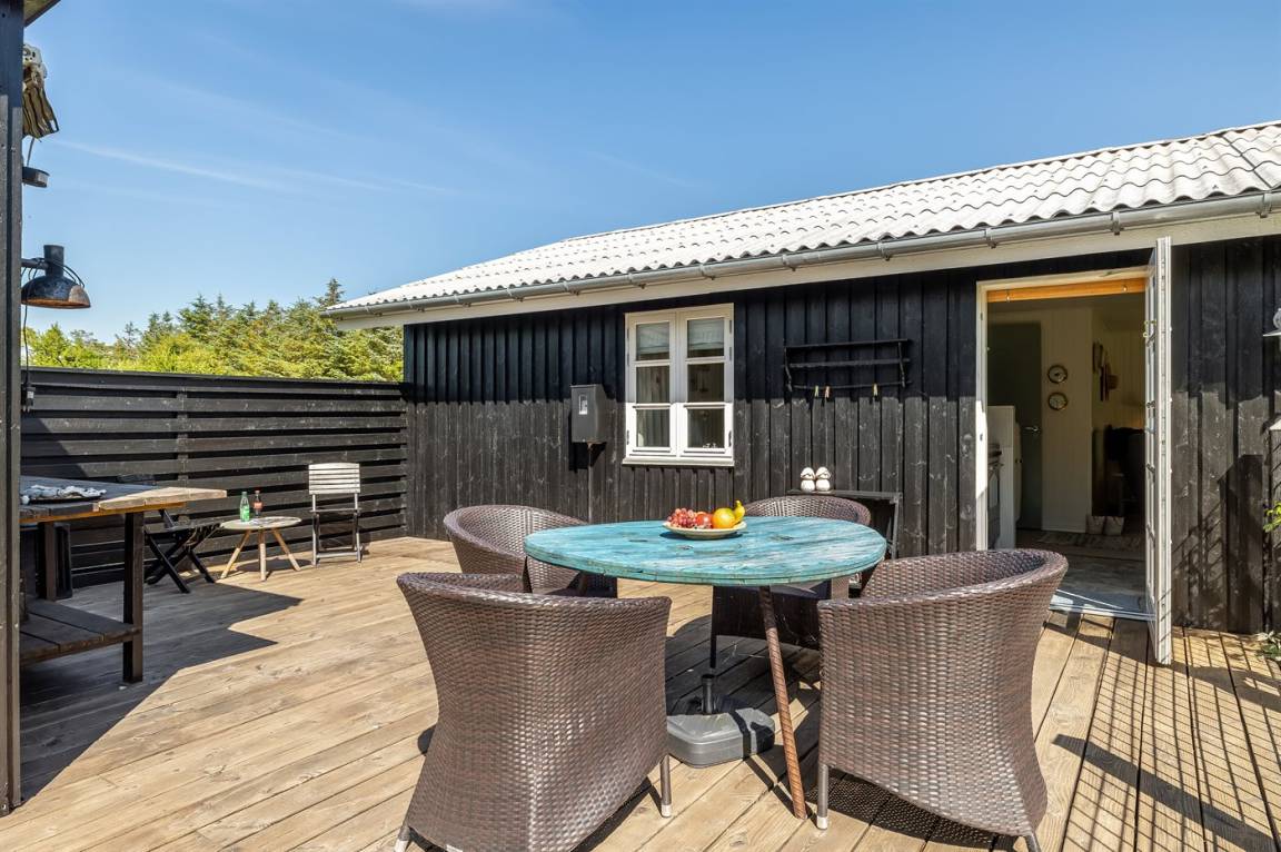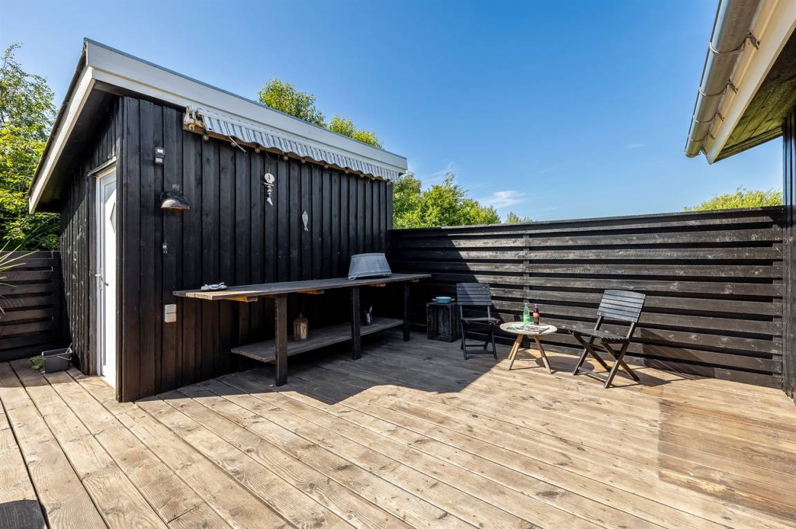 DraußenDie Ferienunterkunft liegt auf einem 2144 m² großen Naturgrundstück. Die Entfernung zum Meer beträgt 2500 m. Die Entfernung zum Fjord beträgt 1000 m. Die nächste Einkaufsmöglichkeit liegt 3000 m entfernt. In einem Abstand von 1600 m gibt es einen Golfplatz. Es steht ein zum Teil überdachtes und geschlossenes Terrassenareal zur Verfügung. Die Entfernung zu einem Spielplatz beträgt 500 m.Lagerfeuerstelle. Parkplatz auf dem Grundstück.
