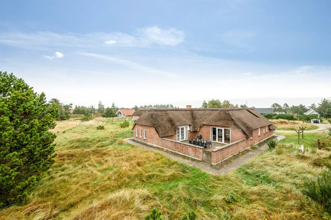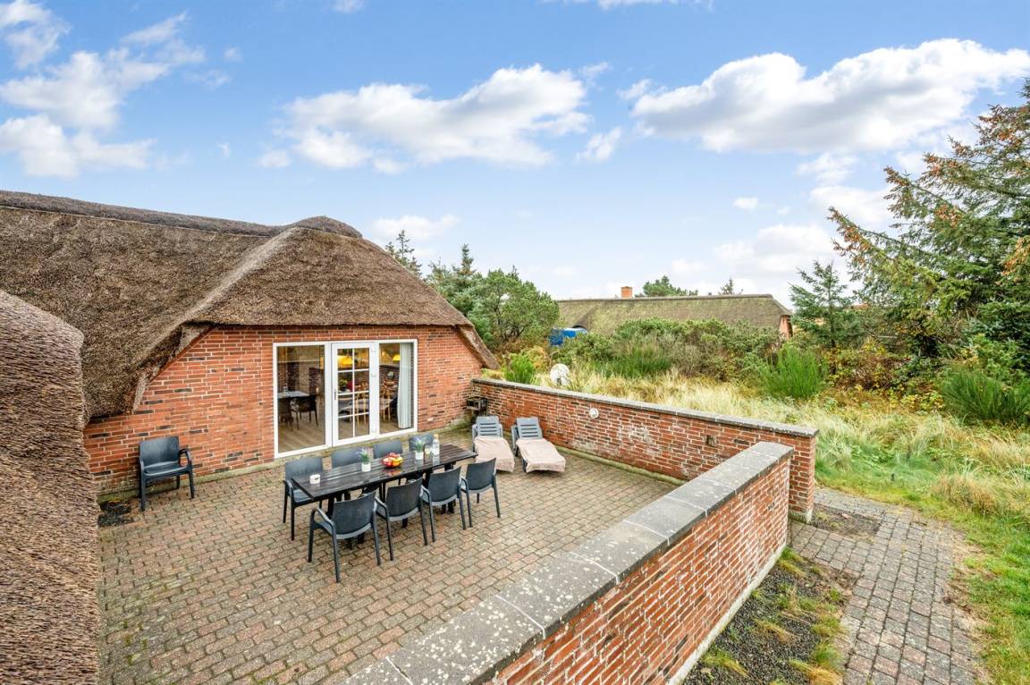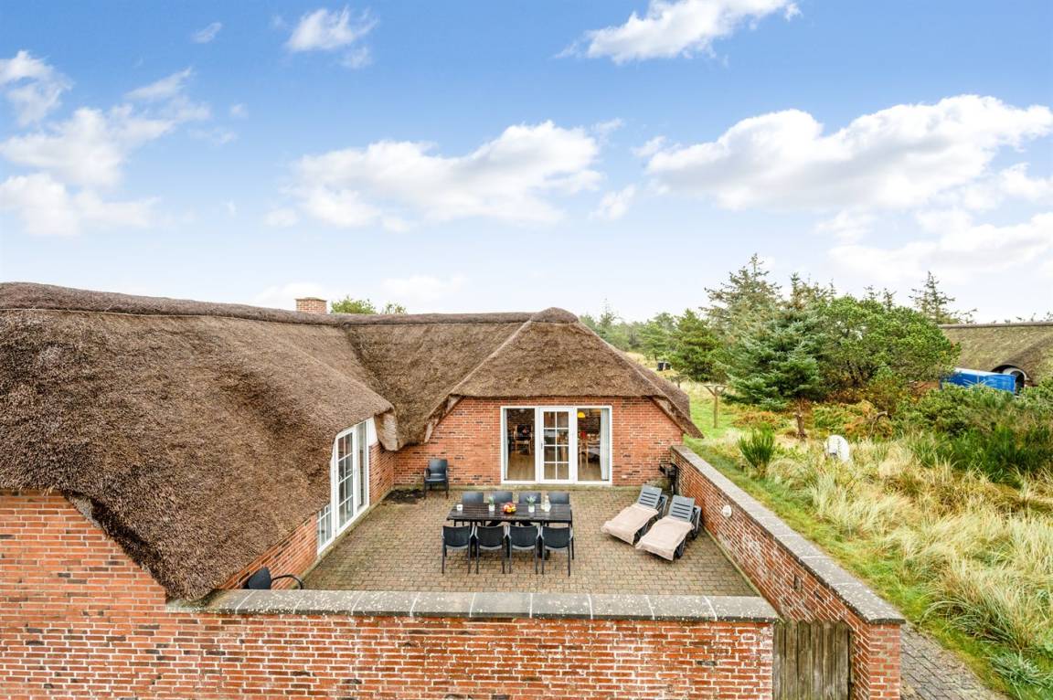 Dieses nette Sommerhaus mit Reetdach liegt auf einem Dünengrundstück nahe an der Nordsee. Hier kannst du entspannte Stunden mit der Familie und mit Freunden genießen – sowohl draußen auf der komplett geschlossenen und eingezäunten Terrasse als auch drinnen in den gemütlichen Räumen.