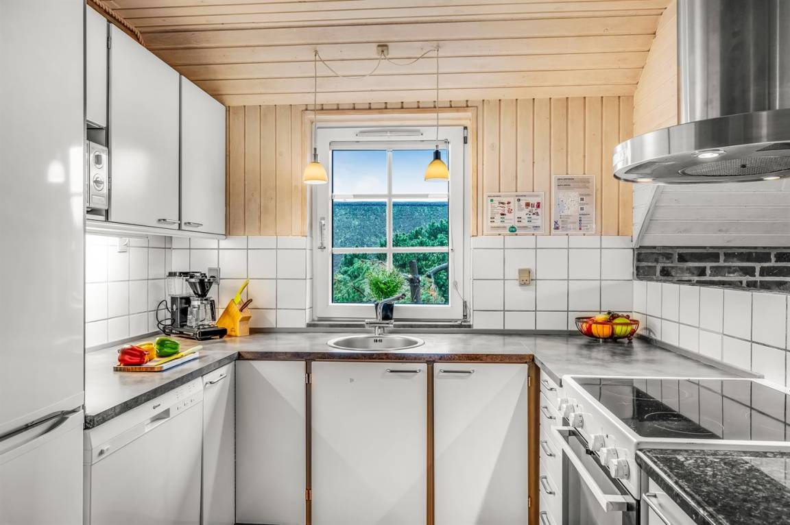 DraußenDie Ferienunterkunft liegt auf einem 2001 m² großen Naturgrundstück. Die Entfernung zum Meer beträgt 700 m. Die Entfernung zum Fjord beträgt 800 m. Die nächste Einkaufsmöglichkeit liegt 6000 m entfernt. In einem Abstand von 7000 m gibt es einen Golfplatz. Es steht ein geschlossenes Terrassenareal zur Verfügung. Schaukel. Sandkasten. Parkplatz auf dem Grundstück.
