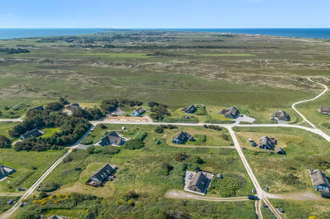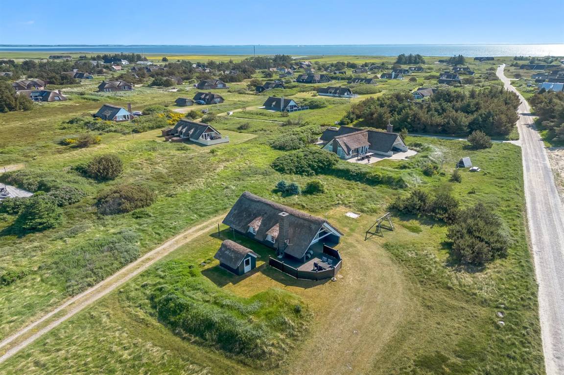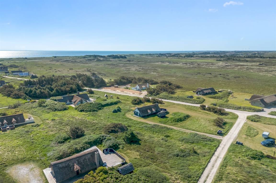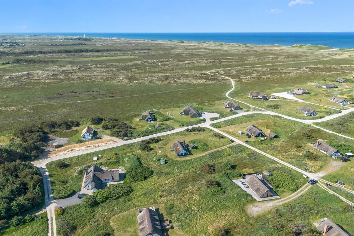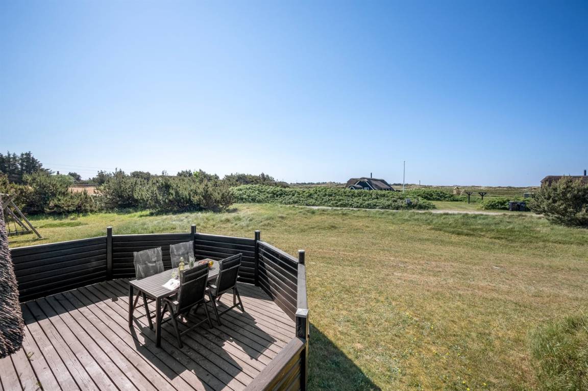 Auf einem großen Naturgrundstück 800 m vom Wasser entfernt liegt dieses gepflegte Ferienhaus mit Reetdach zwischen dem Fischerort Hvide Sande und dem Badeort Søndervig. Das Ferienhaus ist gemütlich eingerichtet mit offenes Obergeschoss mit 2 Schlafplätzen.