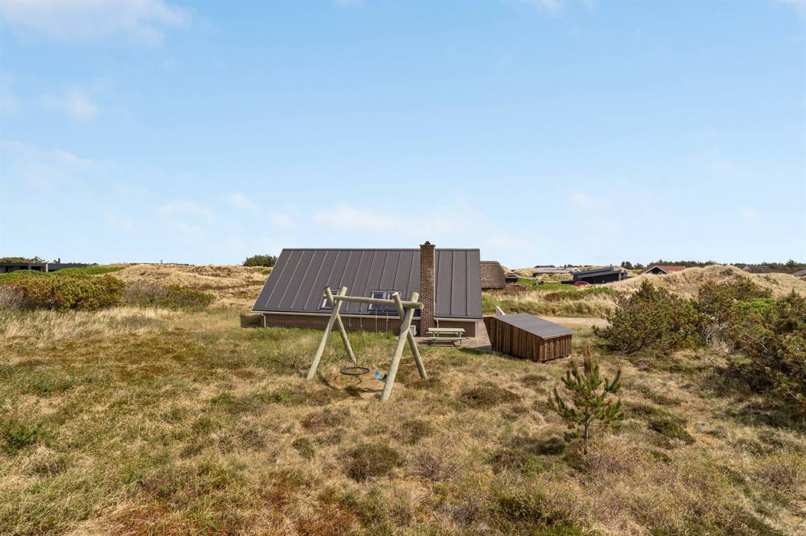 Auf einem schönen Naturgrundstück in ruhiger Umgebung, nur 600 m von der Nordsee entfernt und nicht weit von den Aktivitäten in Søndervig, liegt dieses geräumige und gepflegte Ferienhaus aus Holz. Das Haus ist 1978 gebaut und laufend modernisiert. Es gibt eine schöne Terrasse mit Gartenmöbeln, von wo Sie die Aussicht über das Dünengebiet genießen können. Innen gibt es Holzböden, jedoch Teppichböden in den Zimmern. Großes Badezimmer mit 2 Waschbecken, Duschnische, Waschmaschine und 1-Pers.-Whirlpool. Moderne Küche mit u. a. Geschirrspüler, Tiefkühlgerät, Mikrowelle, Umluftofen und Herd mit Ceran-Feld. Gemütliches Wohnzimmer mit Kaminofen, TV mit Satellitenanschluss (Astra) sowie Stereoanlage mit CD-Spieler. Außerdem kostenlose, kabellose Internetverbindung vorhanden (Computer ist mitzubringen). 2 Schlafzimmer, 1 mit Doppelbett und 1 mit 2 Einzelbetten. Besuchen Sie Søndervig, wo es einen großen Supermarkt, kleine Geschäfte, Restaurants, Bowling- und Fitnesscenter gibt. Es ist auch möglich, im Gebiet Golf zu spielen und zu Angeln.
