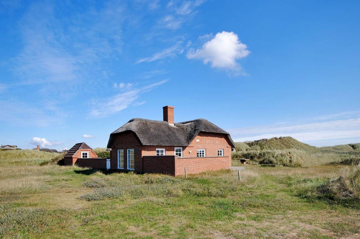 Schönes Ferienhaus mit Reetdach auf einem großen Grundstück in Houvig gelegen - nur 150 m vom Strand entfernt und direkt neben einem Naturschutzgebiet. Zum Haus gehören 3 Terrassen mit gutem Windschutz und diversen Gartenmöbeln sowie ein separater Grillplatz. Der Ferienort Søndervig liegt ca. 5 Min. Fahrt vom Haus entfernt - hier können Sie Golf spielen, Essen gehen, Bowlen, Einkaufen und ins Fitnesscenter gehen.