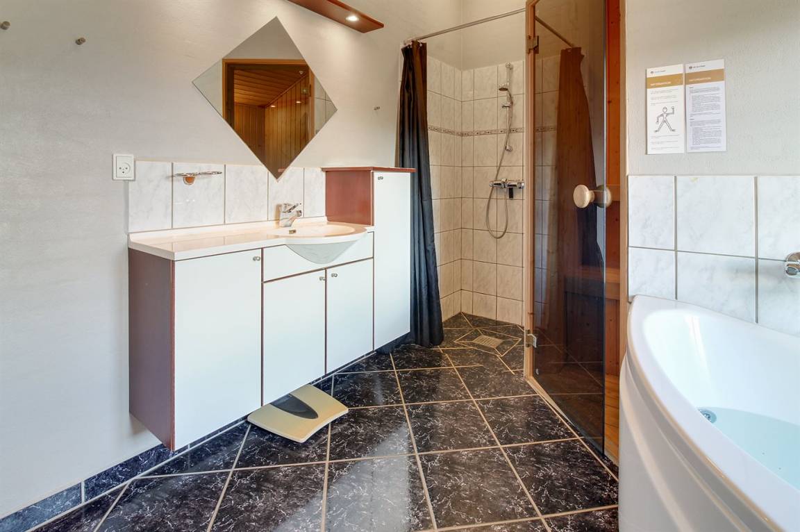 WC und BadEs gibt 2 Badezimmer mit Dusche und 2 Toiletten. Fußbodenheizung in 1 Badezimmer. Es steht eine Sauna zur Verfügung in der Sie sich so richtig entspannen können.