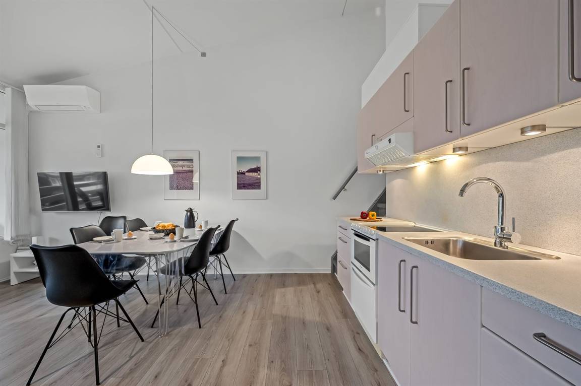 Lasst euch die besondere Atmosphäre in Søndervig nicht entgehen, wo Erlebnisse und Shopping Hand in Hand gehen. Wenn ihr in die Wohnung zurückkehrt, könnt ihr den Abend auf dem südlich ausgerichteten Balkon genießen.
