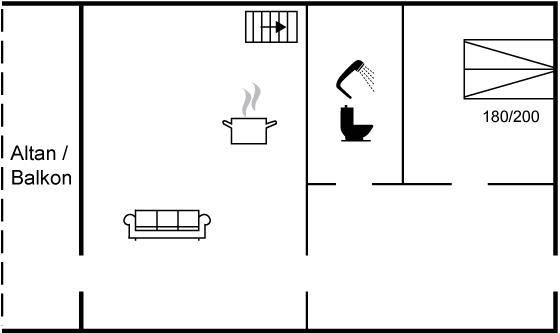 SchlafverhältnisseEs gibt einen Schlafraum. 4 Schlafplätze in Doppelbetten.2 Schlafplätze auf Schlafcouchen (einzeln). 4 von diesen Schlafplätzen befinden sich im offenen Obergeschoss.