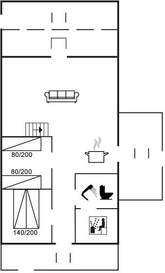 SchlafverhältnisseDie Schlafplätze verteilen sich auf 2 Schlafräume. 2 Schlafplätze in einem Doppelbett. 4 Schlafplätze in Einzelbetten. 2 von diesen Schlafplätzen befinden sich im offenen Obergeschoss.