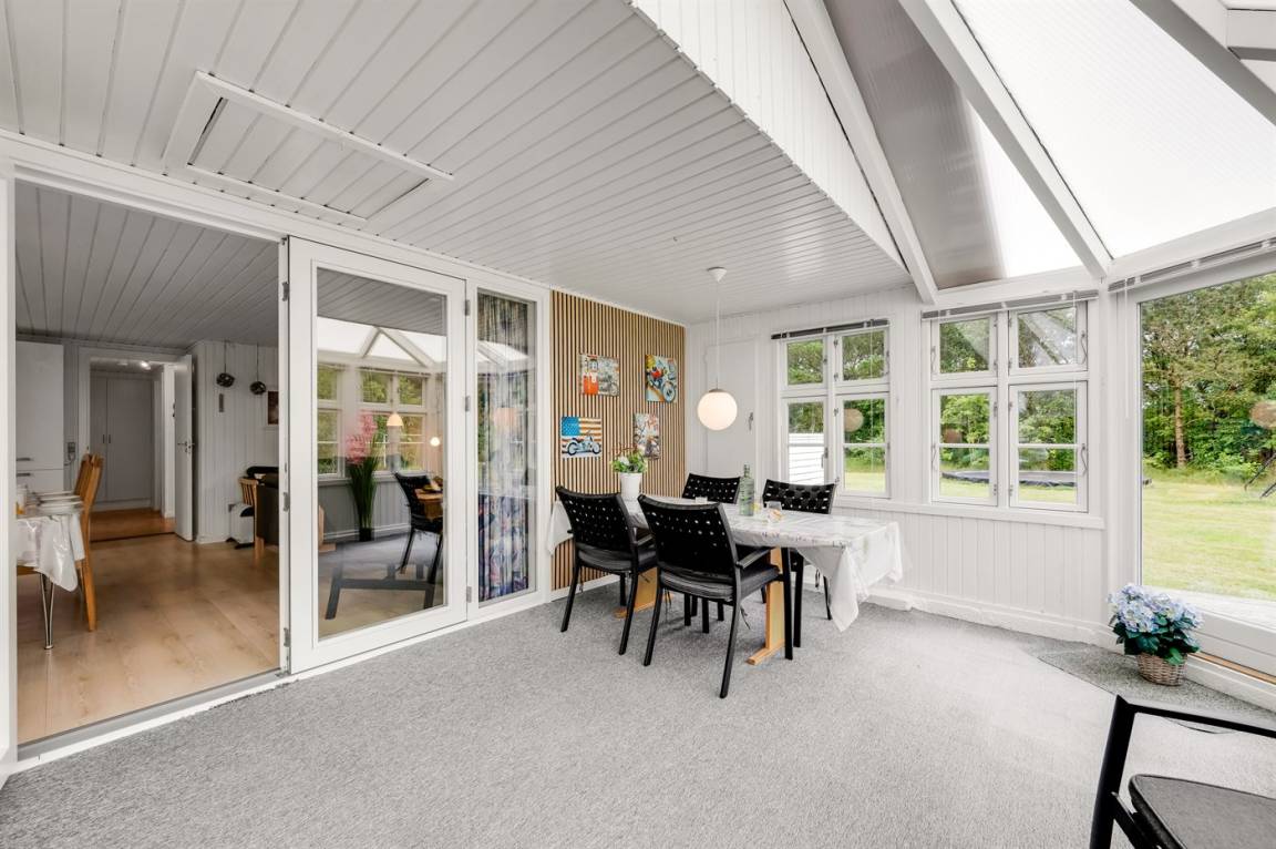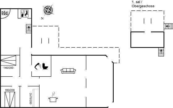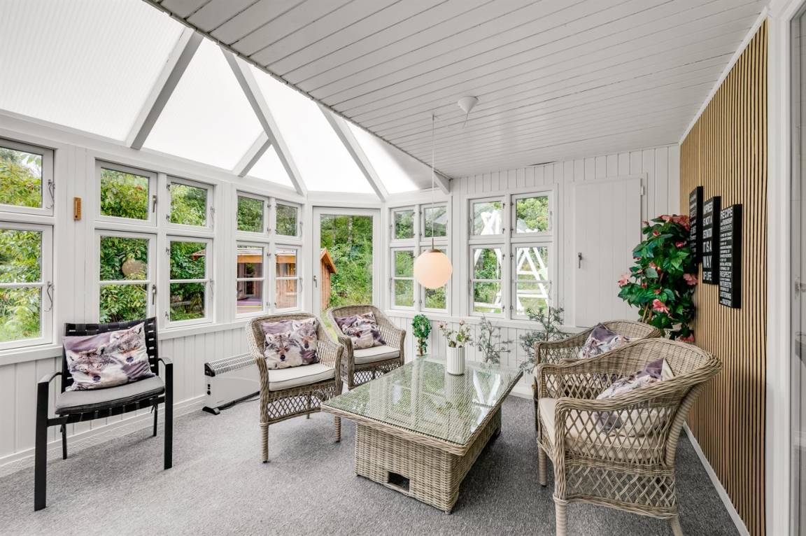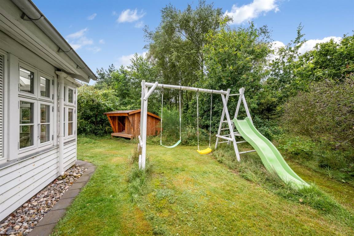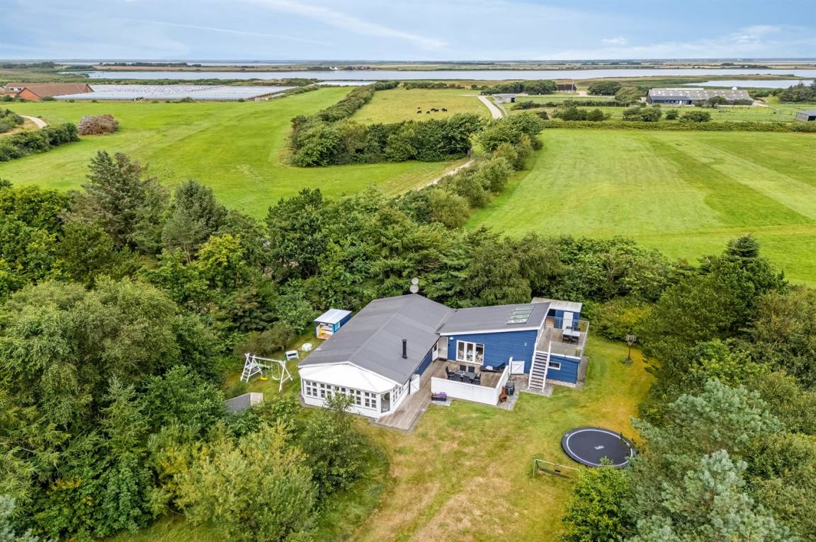 DraußenDie Ferienunterkunft liegt auf einem 2009 m² großen Naturgrundstück. Die Entfernung zum Meer beträgt 2500 m. Die Entfernung zum Fjord beträgt 600 m. Die nächste Einkaufsmöglichkeit liegt 3000 m entfernt. In einem Abstand von 2000 m gibt es einen Golfplatz. Es steht ein geschlossenes Terrassenareal zur Verfügung.Balkon im Obergeschoss. Zutritt zu einem Wintergarten. Schaukel. Sandkasten. Kinderspielhaus. Trampolin. Rutsche. Fußballtor. Die Entfernung zu einem Spielplatz beträgt 500 m. Windschutzhütte. Parkplatz auf dem Grundstück.