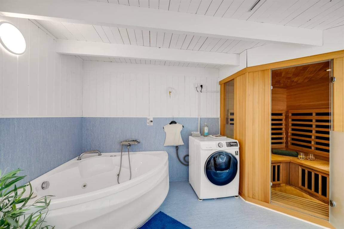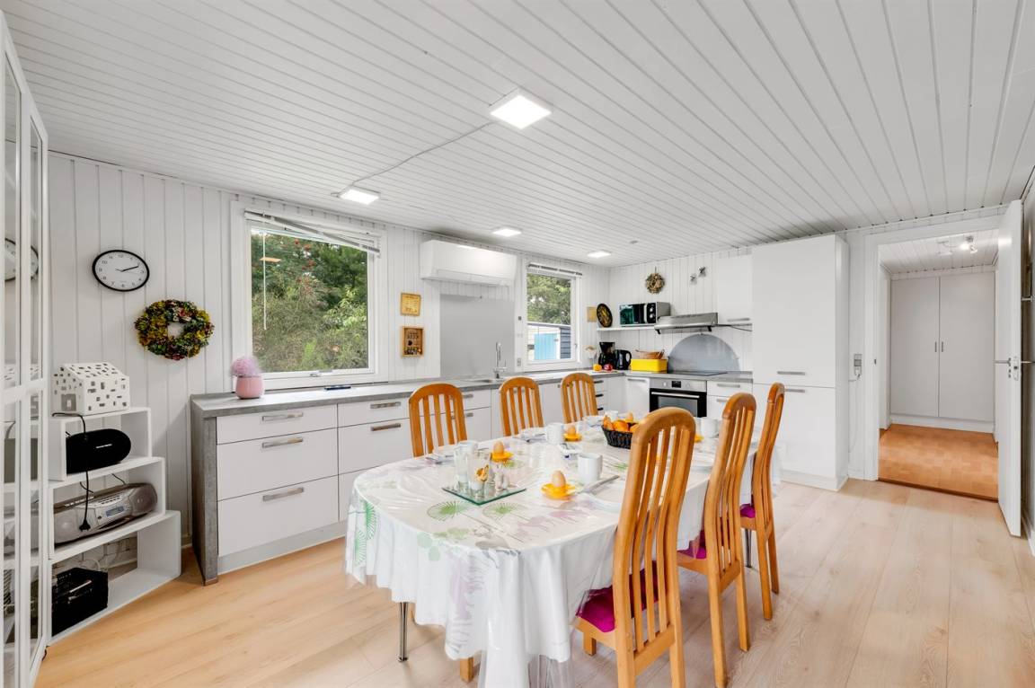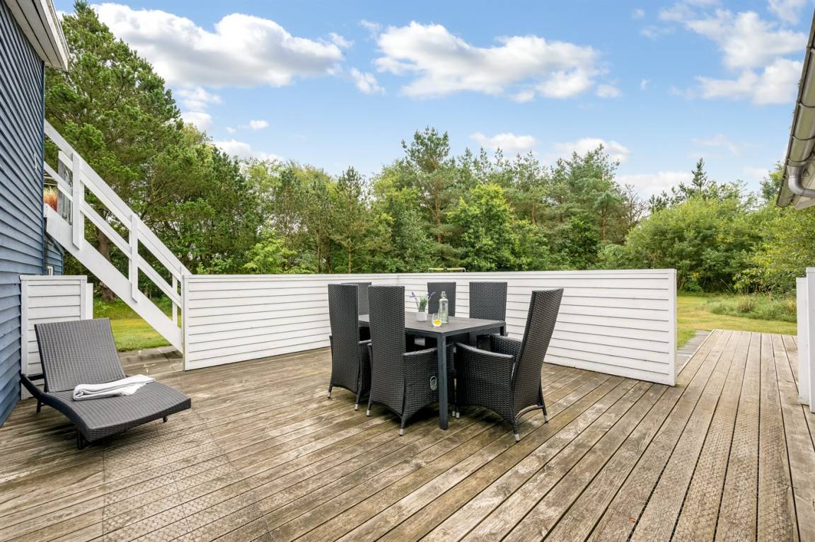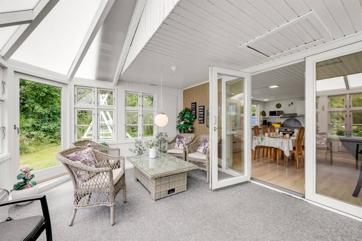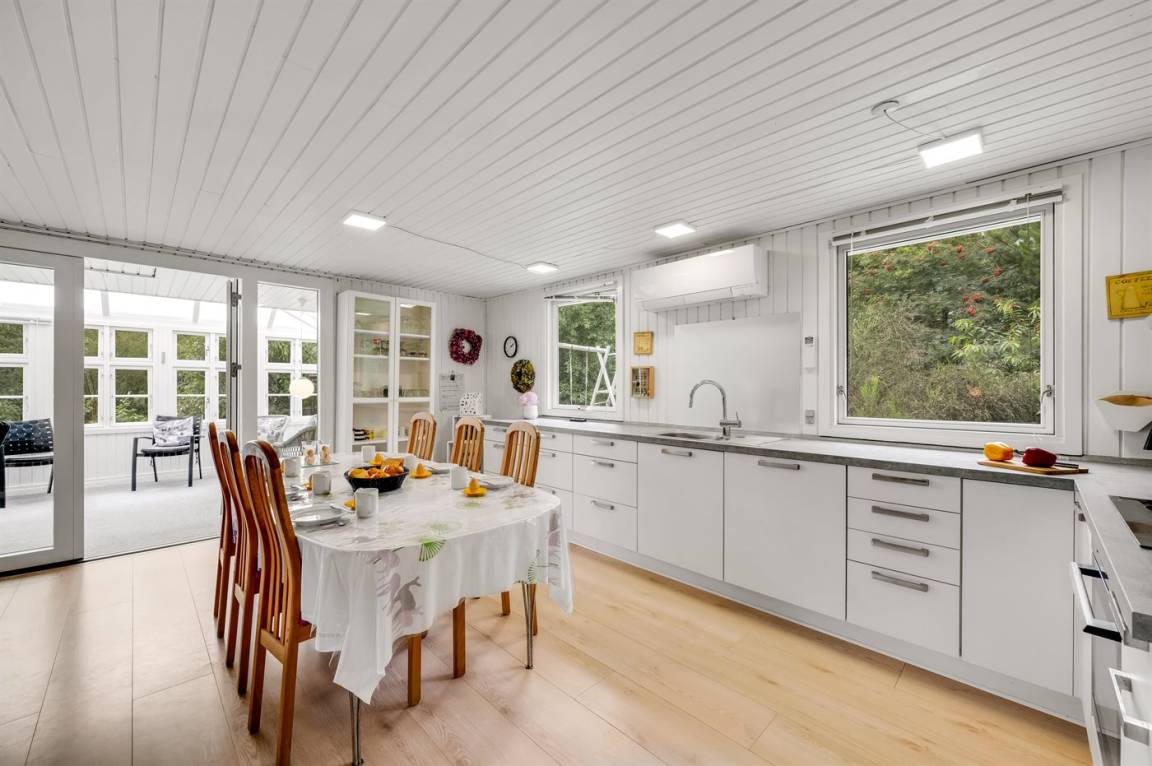 DraußenDie Ferienunterkunft liegt auf einem 2009 m² großen Naturgrundstück. Die Entfernung zum Meer beträgt 2500 m. Die Entfernung zum Fjord beträgt 600 m. Die nächste Einkaufsmöglichkeit liegt 3000 m entfernt. In einem Abstand von 2000 m gibt es einen Golfplatz. Es steht ein geschlossenes Terrassenareal zur Verfügung.Balkon im Obergeschoss. Zutritt zu einem Wintergarten. Schaukel. Sandkasten. Kinderspielhaus. Trampolin. Rutsche. Fußballtor. Die Entfernung zu einem Spielplatz beträgt 500 m. Windschutzhütte. Parkplatz auf dem Grundstück.