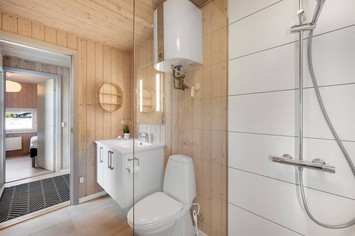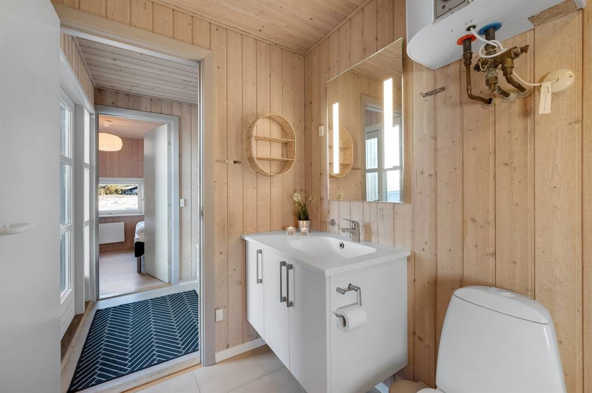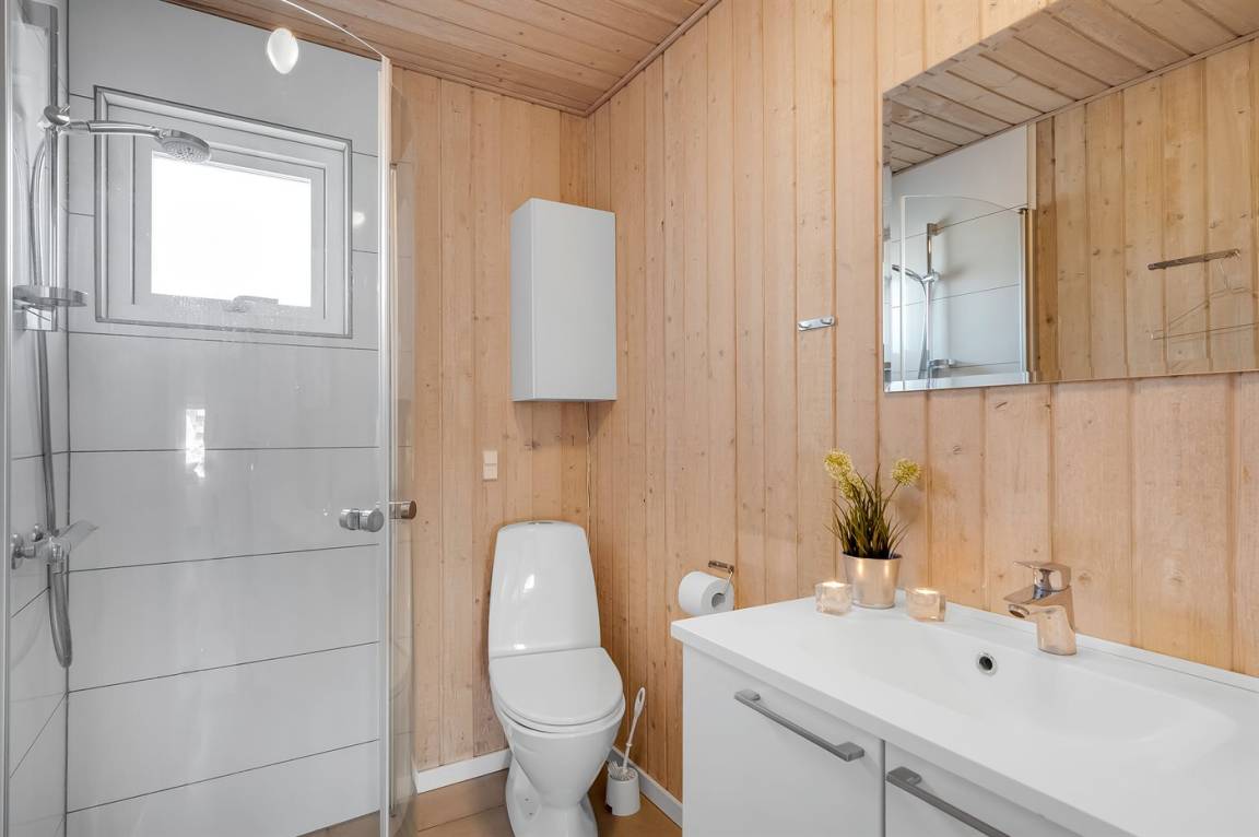 „Advice to other guests: Das Haus ist bestens für 6 Personen geeignet, für 8 Personen wird es am Esstisch sehr eng, ebenso im Wohnzimmer, da es dort nur 4 Sitzpätze gibt. Jedes Schlafzimmer hat einen bis zwei Kleiderschränke. Das modernere Bad hat leider einen sehr unangenehmen Geruch verbreitet, so dass wir auf das andere Bad bei der Sauna ausweichen mussten. (Sol og Strand konnte das Problem leider nicht lösen.) Diese Dusche war extremst verkalkt u staubig. Das warme Wasser aus dem Wasserboiler reicht für max 2 Personen zum Duschen. Die Sauna muss vor Benutzung ausgeräumt werden. Die Rattansessel, ebenso wie der einzige Ledersessel im Wohnzimmer haben schon deutlich bessere Tage gesehen. Die Ausstattung der Küche war gut, ein wenig mehr Töpfe mit passendem Deckel wäre Luxus gewesen. Die Aufteilung der Zimmer hat uns sehr gut gefallen. Die drei Terrassen konnten wir passend zur Tageszeit und Wetter sehr gut nutzen. Die Nähe zum Meer ist einfach spitze. Cleanliness: Klobrille war voll mit eingetrocknetem Putzmittel versehen die Sauna verstaubt Backbleche und Backofen waren schmutzig die Dusche in dem Bad dirket neben der Haustüre war ecklig verstaubt u verkalkt. The holiday home itself: Auf den Fotos stimmten die Anzahl der Sitzplätze nicht mit der Realität überein. Es wurde ein Sofa entnommen. Die Rattansessel weißen einen verschlissen Stoff auf Die Sauna muss für die Benutzung erst ausgeräumt werden, da diverse Dinge drin stehen Die Stühle am Eßtisch waren für die Tischhöhe zu hoch und sehr unbequem Klasse war, dass jedes Schlafzimmer einen eigenen Kleiderschrank hatte die Betten waren sehr bequem“